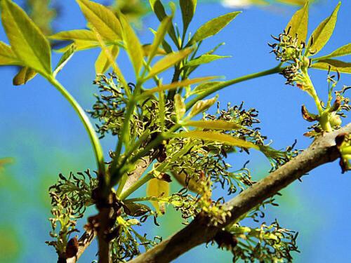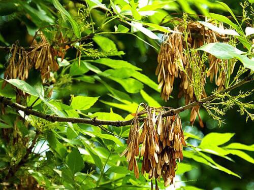 白蜡树(学名:Fraxinus chinensis Roxb)木犀科落叶乔木,树皮灰褐色,纵裂。芽阔卵形或圆锥形,被棕色柔毛或腺毛。小枝黄褐色,粗糙,无毛或疏被长柔毛,旋即秃净,皮孔小,不明显。顶生小叶与侧生小叶近等大或稍大,先端锐尖至渐尖,基部钝圆或楔形,叶缘具整齐锯齿,上面无毛,下面无毛或有时沿中脉两侧被白色长柔毛,中脉在上面平坦,宿存萼紧贴于坚果基部,常在一侧开口深裂。花期4-5月,果期7-9月。