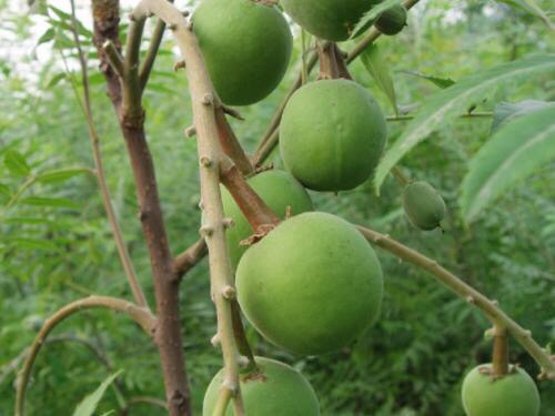 文冠果(学名:Xanthoceras sorbifolium Bunge),无患子科、文冠果属落叶灌木或小乔木,高可达5米;小枝褐红色粗壮,叶连柄长可达30厘米;小叶对生,两侧稍不对称,顶端渐尖,基部楔形,边缘有锐利锯齿,两性花的花序顶生,雄花序腋生,直立,总花梗短,花瓣白色,基部紫红色或黄色,花盘的角状附属体橙黄色,花丝无毛;蒴果长达6厘米;种子黑色而有光泽。春季开花,秋初结果。
