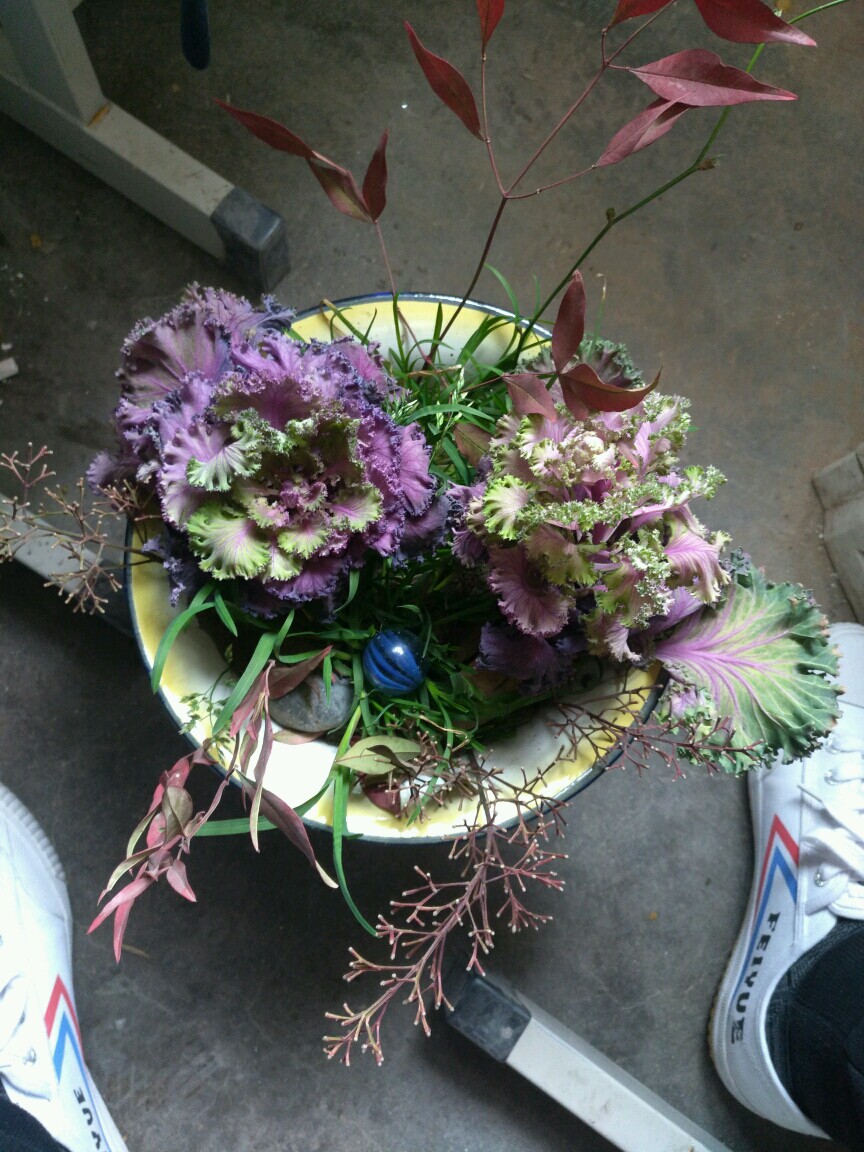 前两天和同学一起倒垃圾,垃圾桶里有好多学校小花园里淘汰的羽衣甘蓝,我捡了两个回来,准备再次种植。