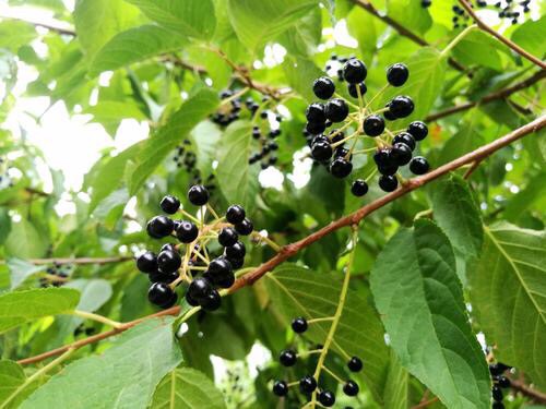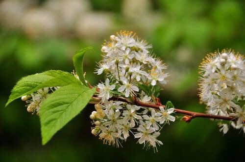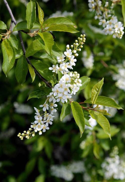 稠李(学名:Padus racemosa (Linn.) Gilib.)是蔷薇科稠李属植物,落叶乔木,高可达15米;树皮粗糙而多斑纹,老枝紫褐色或灰褐色,有浅色皮孔;叶片椭圆形、长圆形或长圆倒卵形,托叶膜质,线形,先端渐尖,边有带腺锯齿,早落。总状花序具有多花,长7-10厘米,基部通常有2-3叶。核果卵球形,顶端有尖头,花期4-5月,果期5-10月。