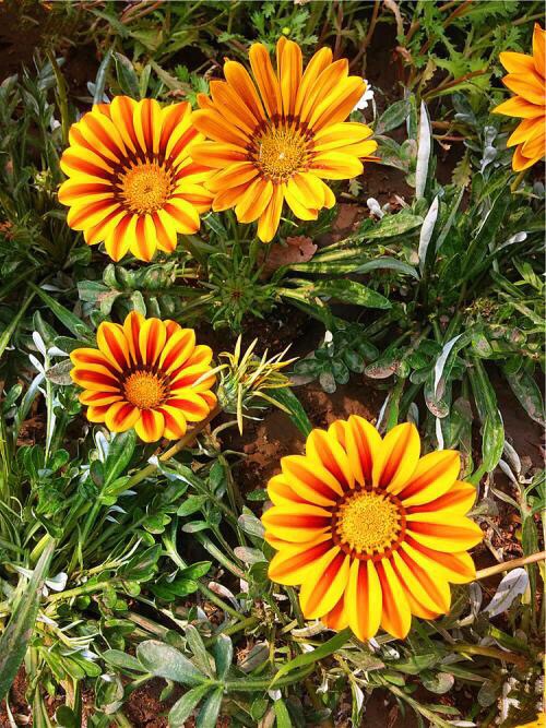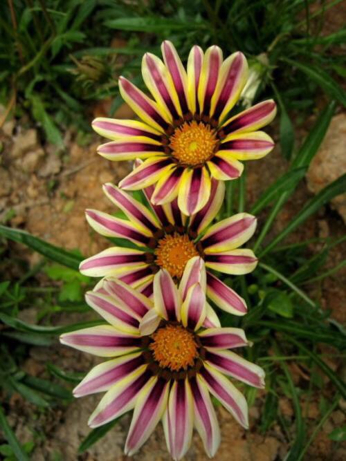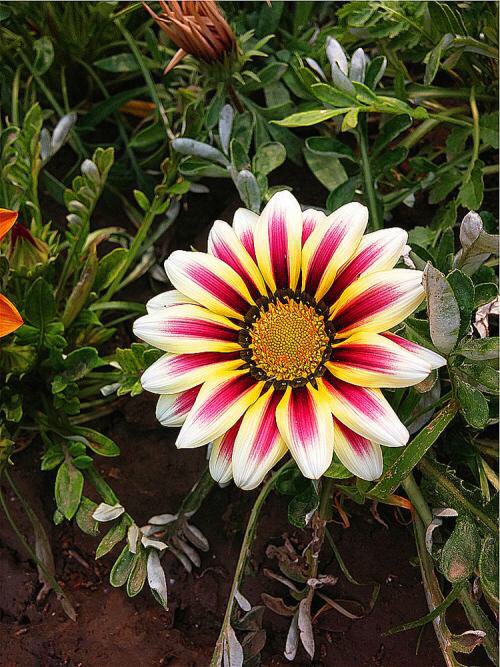 别名勋章菊,因其形状似勋章而得名。勋章菊的花形奇特、花色丰富,其花心有深色眼斑,形似勋章,具有浓厚的野趣,是园林中常见的盆栽花卉和花坛用花。原产非洲南部。现世界各地广为栽培的新品种不断涌现。