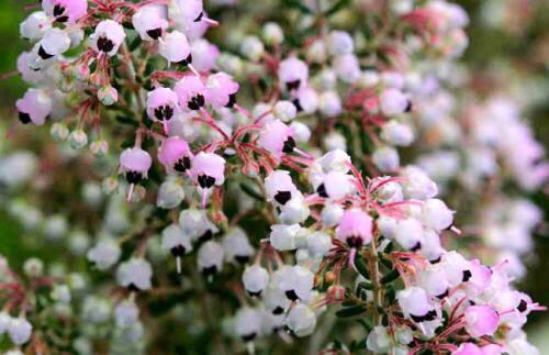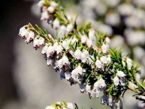 欧石南(学名:Erica)是指杜鹃花科欧石南属的植物。全球大约有七百多种的欧石南,当中大部分都产自南非,被称为“南非特有种的皇后”;另外尚有七十多个物种大致分布于非洲其它地域、地中海地区及欧洲地区。欧石南也是12月6,12,19,22,26日的诞生花。图中显示的“圣诞欧石南(Erica canaliculata)”,因为形态像日本的著名图案“蛇の目”(常见于家纹、和伞等),因此在日本有“蛇眼石南花”的