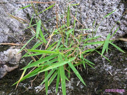 金丝草 ,别名落苏、黄毛草、毛毛草、笔仔草、猫仔草、墙头竹,拉丁文名Pogonatherum crinitum (Thunb.) Kunth.,金丝草属,禾本科,单子叶植物纲,被子植物门。