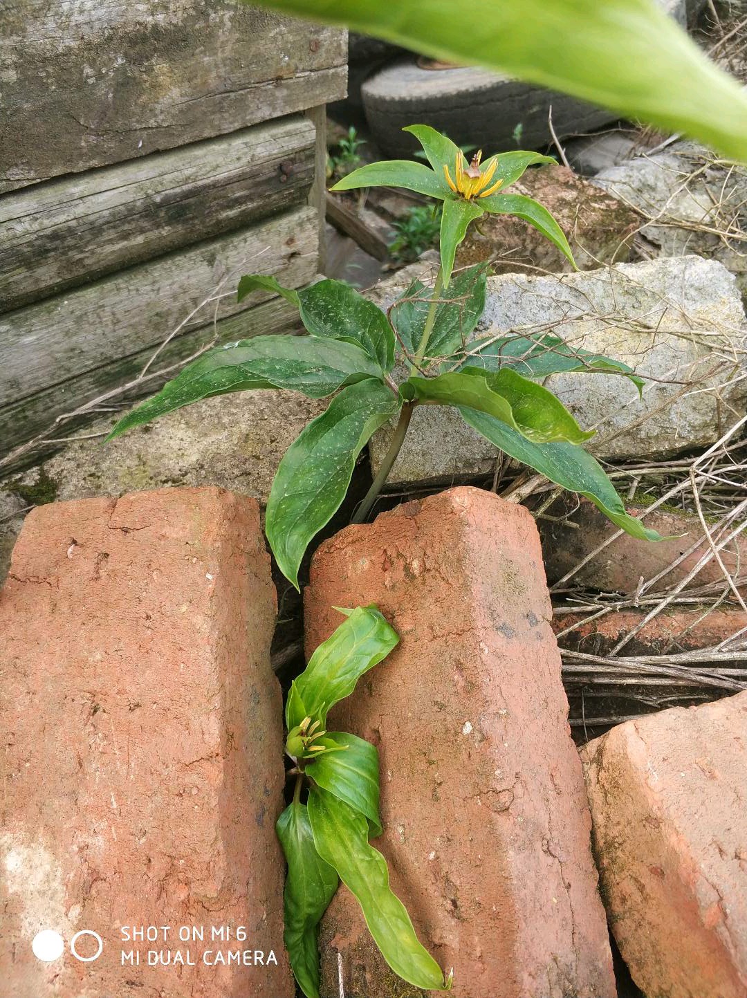 :小的那颗移开砖头发现茎有点扭曲,我带回家里种了。