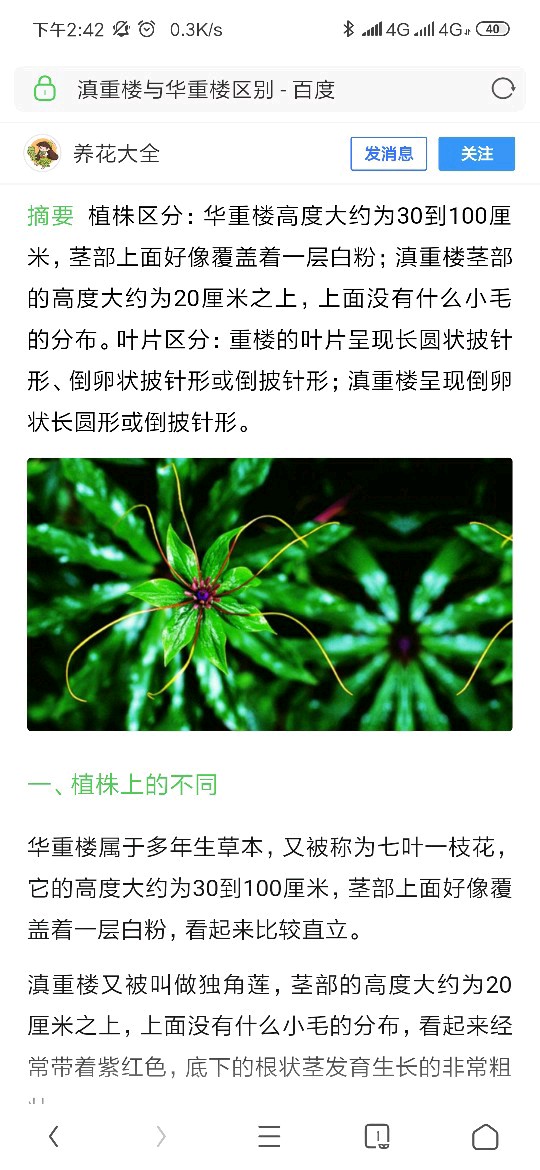 :根据网上“华重楼茎部似覆盖一层白粉”的描述,以及产地分布,个人更倾向于华重楼。不够专业,欢迎更专业人士的解答。