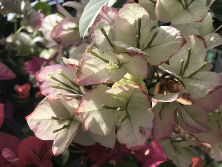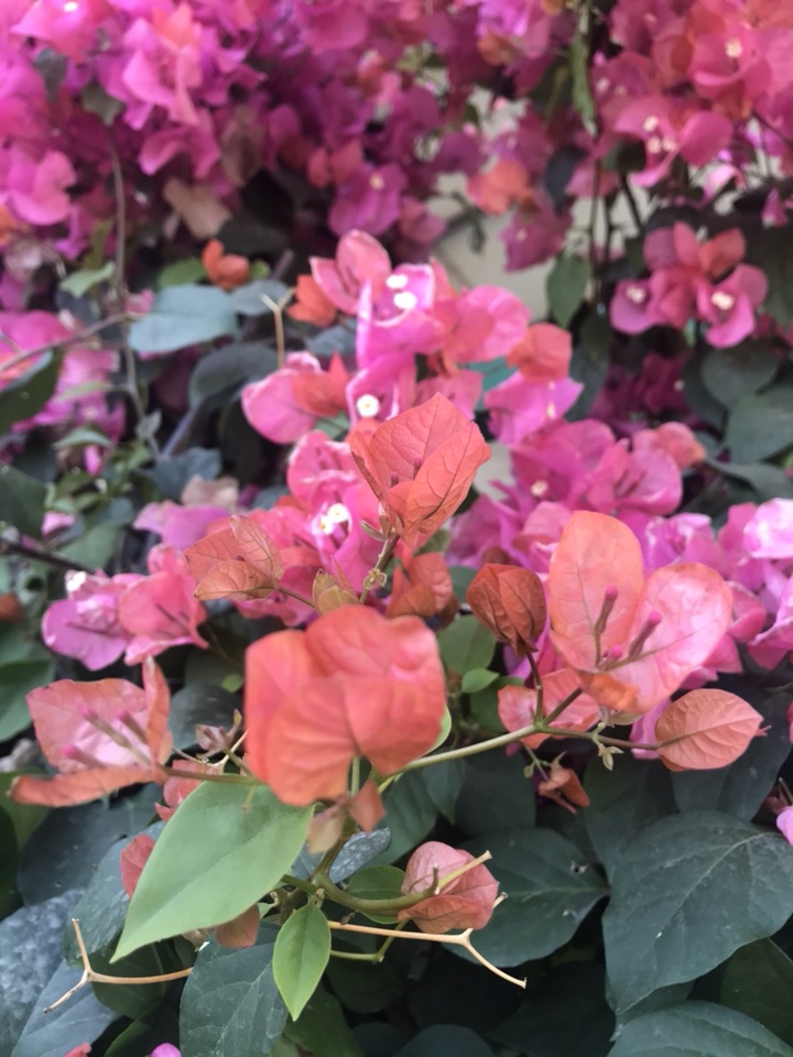 叶子花(学名:Bougainvillea spectabilis Willd.),紫茉莉科,叶子花属木质藤本状灌木,别称三角花、室中花、九重葛、贺春红。原产南美洲的巴西,大约在十九世纪三十年代才传到欧洲栽培,喜温暖湿润、阳光充足的环境,不耐寒。