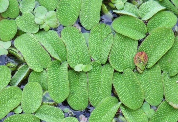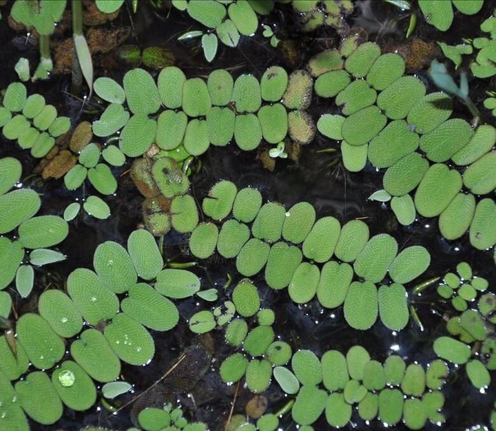 槐叶苹(学名:Salvinia natans (L.) All)是槐叶苹科小型漂浮植物。茎细长而横走,被褐色节状毛。三叶轮生,上面二叶漂浮水面,形如槐叶,长圆形或椭圆形,长0.8-1.4厘米,宽5-8毫米,顶端钝圆,基部圆形或稍呈心形,因叶子形似槐树的羽状叶而得名,此外还有蜈蚣苹、山椒藻的别名,是一种漂浮在水面上的水生植物。分布:为水生杂草,全草也可供药用。
