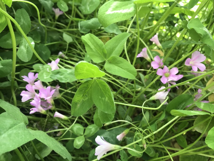 红花酢浆草(学名:Oxalis corymbosa DC.)是酢浆草科,酢浆草属多年生直立草本植物,别称大酸味草、南天七、夜合梅、大叶酢浆草、三夹莲,紫花酢浆草,原产南美热带地区。