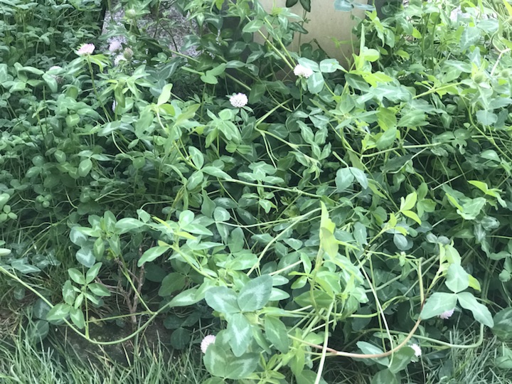 楚东农业里的植物大都养的比在当地都好,比如这白车轴草。白车轴草是那里的主体绿化植被,放眼地上铺天盖地的都是它, 长的是蓬勃生机,充满生命力,连开的花都比平时见的要大上一倍。