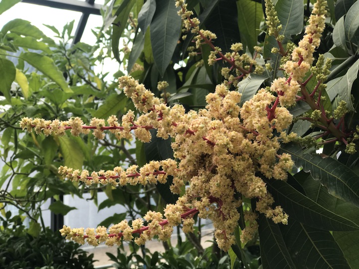 这次在赤峰见到它,我也是挺吃惊的。听楚农的小姐姐讲有一个棚里的都结小芒果了,因着时间有限,又对那边不大熟悉,所以除了这花团锦簇的几株外,并没有看到小芒果。