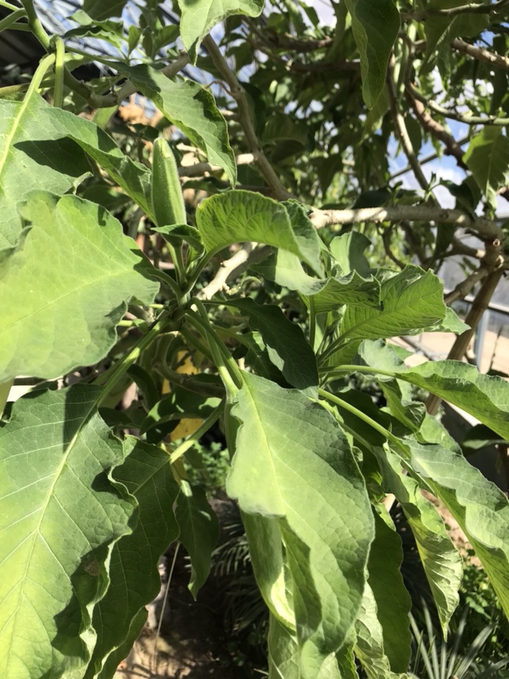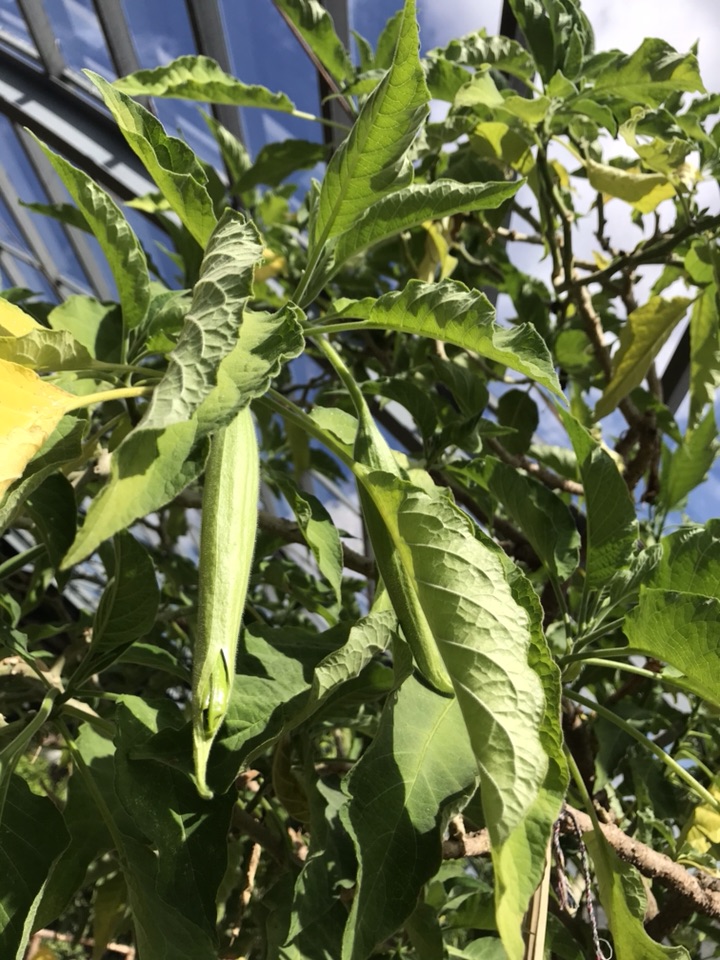 木本曼陀罗,为茄科、曼陀罗属的小乔木,别名大花曼陀罗、天使的号角。全草有毒,以果实特别是种子毒性最大,嫩叶次之,干叶的毒性比鲜叶小。所以爱花的小伙伴们,观花请勿动手!