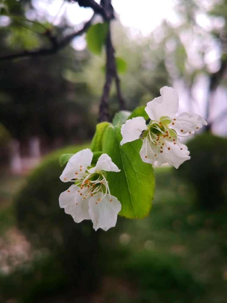 李花,花药黄,花柄长,叶色亮堂堂,蔷薇科植物里的小清新!