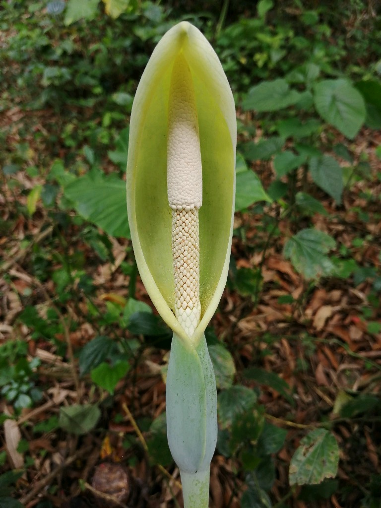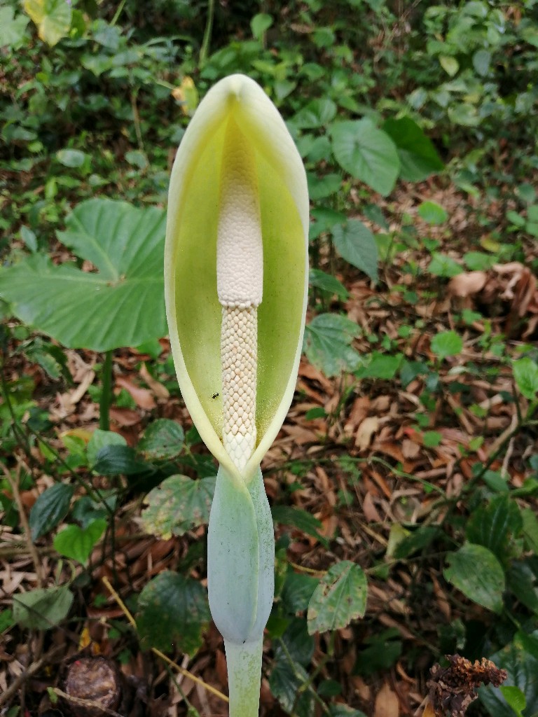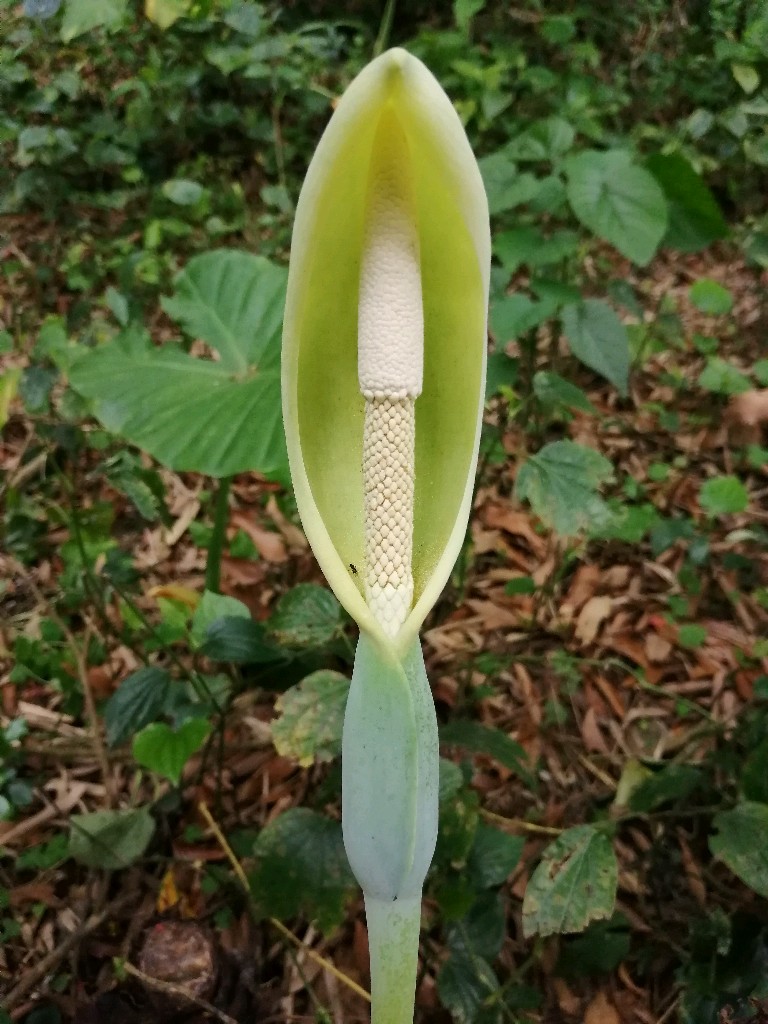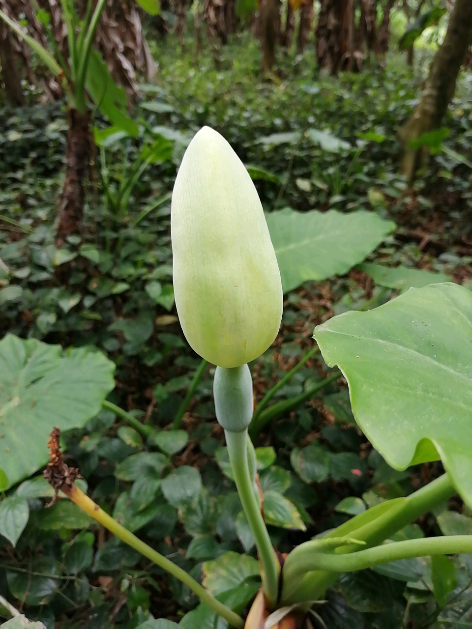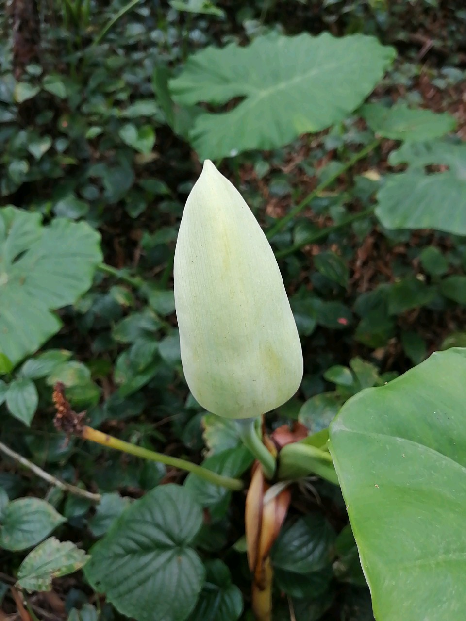 昨天拍的,叶子像芋叶,但又不是像能吃那种的,花开特别,在背面看像荷包形状,从另一面看差异太大了!奇花异景!。