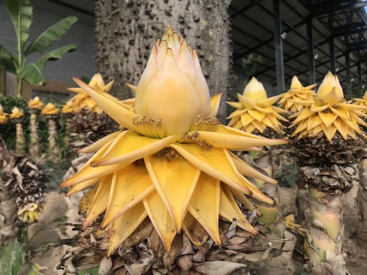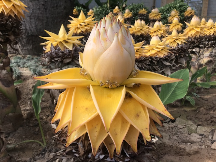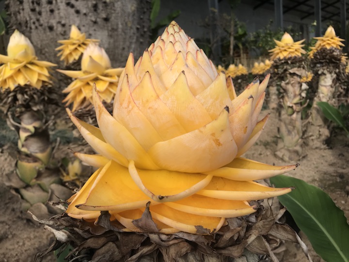 地涌金莲原产中国云南,为中国特产花卉,别称千瓣莲花、地金莲、不倒金钢,被佛教寺院定为“五树六花”之一