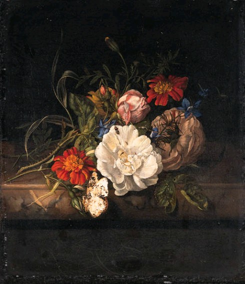 今天,这一幅画还是荷兰女画家雷切尔鲁希奇画的,他画的4朵美丽的月季花,还有孔雀草和亚麻, 这一些美丽的植物在她的笔下显的活灵活现。