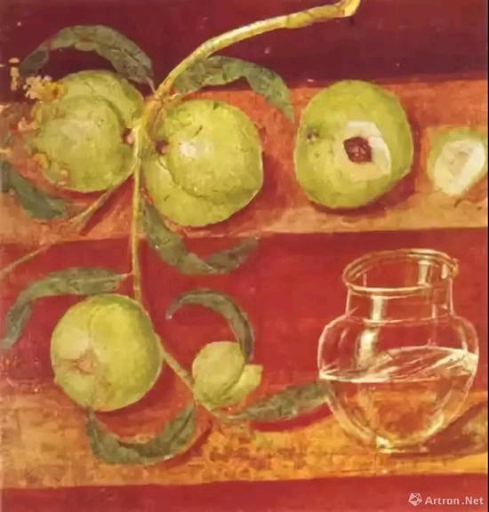 今天, 这一幅画是古罗马的无名画家画的静物画,他(她)?画的这一幅画明显能看出五个桃子,这让我领悟到,在古罗马时期,就有人画出来了静物画。