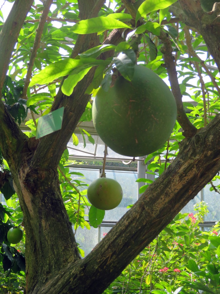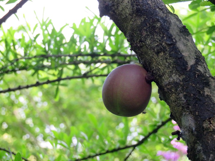 叉叶木与铁木瓜同属紫葳科,炮弹树是玉蕊科。果实坚硬无比,没人能咬得动。