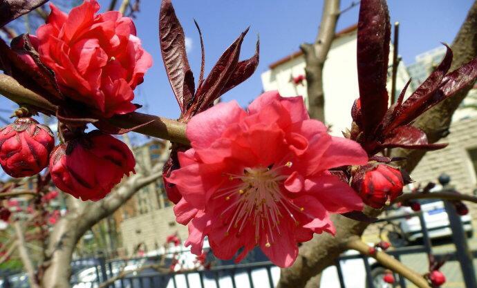 紫叶桃花-小桃西望那人家,出树香梢几树花