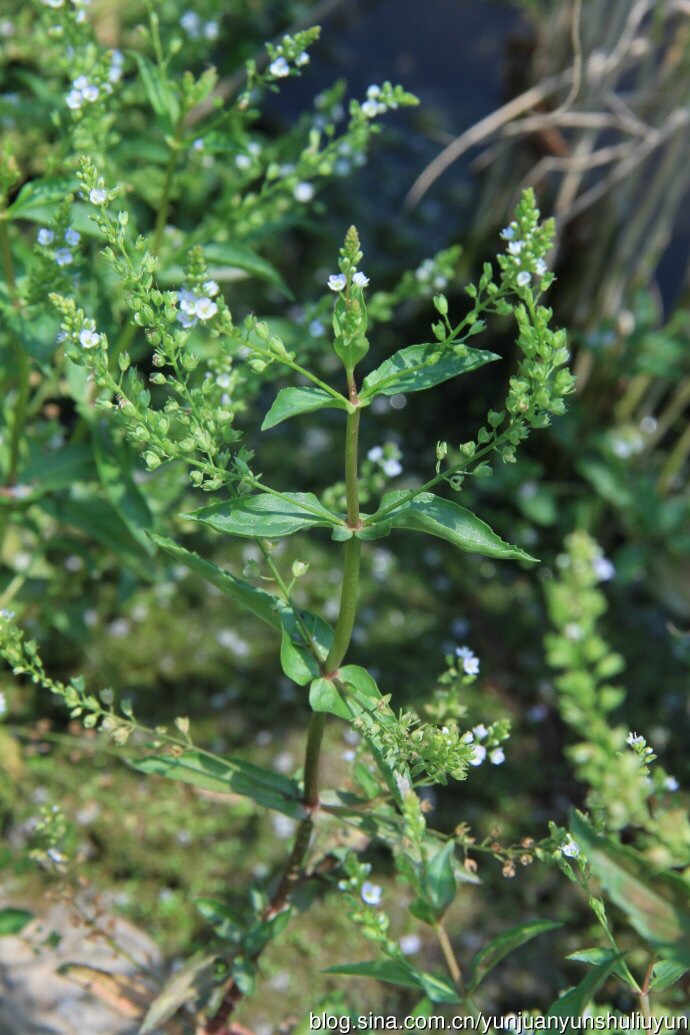 水苦荬,中药名。为玄参科植物北水苦荬Veronica anagallis-aquatica L.及水苦荬Veronica undulata Wall.的带虫瘿果实的全草。北水苦荬分布于长江以北及西南各地,水苦荬分布于除内蒙古、宁夏、青海、西藏外的各地。具有清热解毒,活血止血之功效。