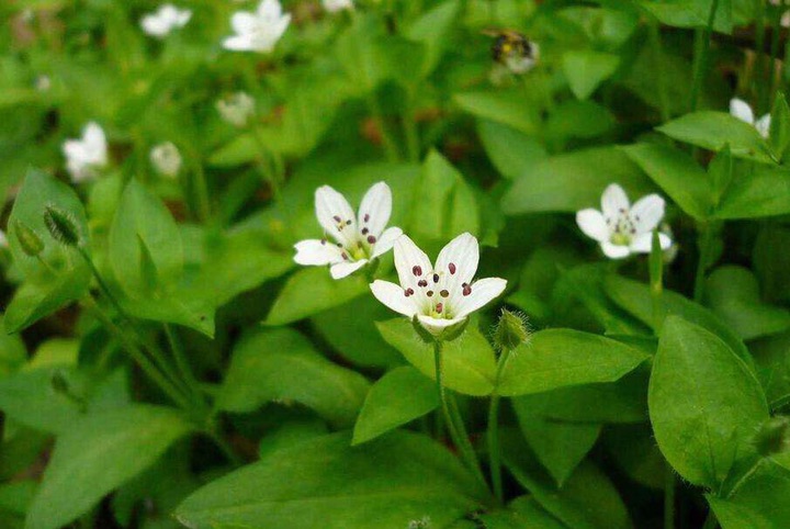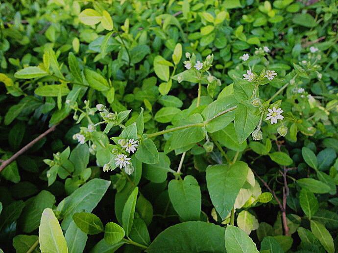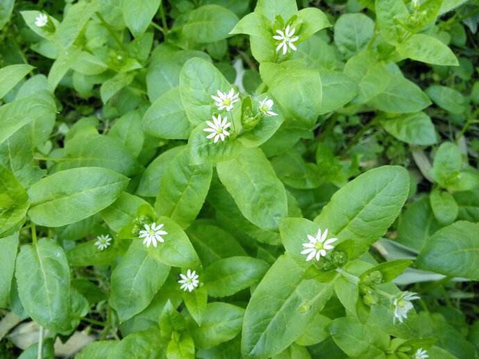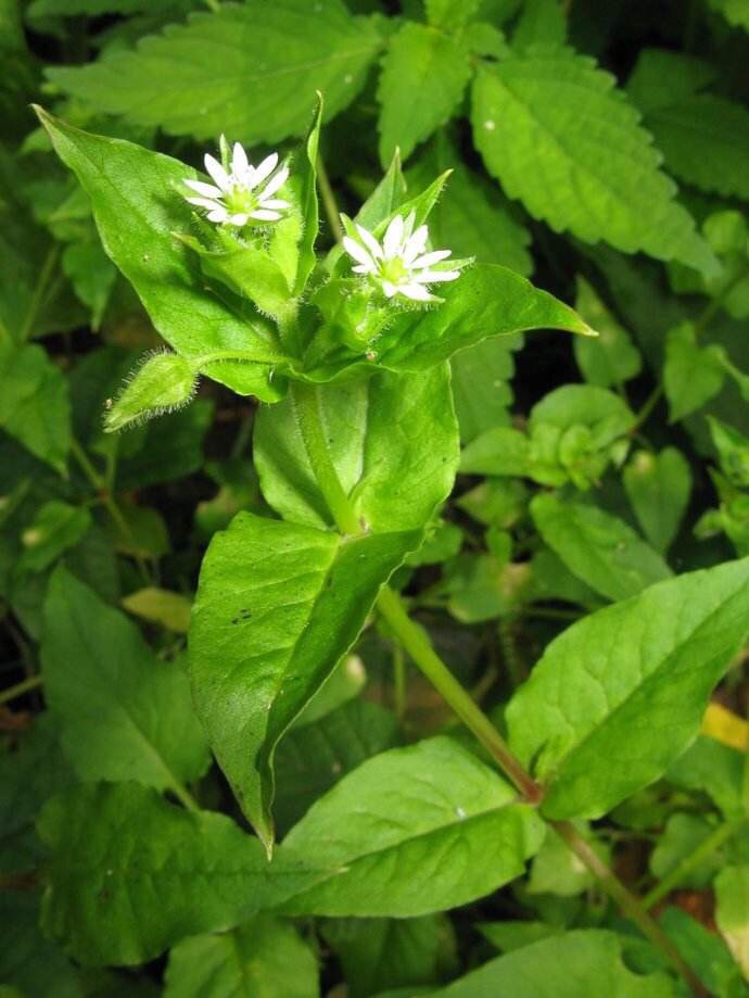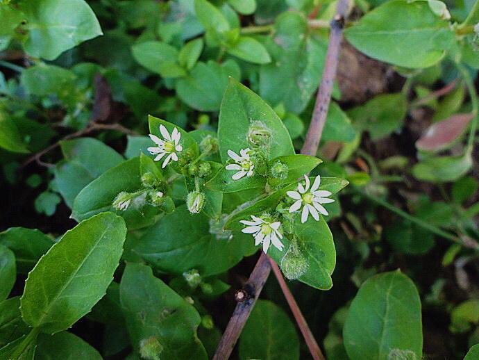 鹅肠菜,别名:牛繁缕、鹅肠草、石灰菜、大鹅儿肠、鹅儿肠,拉丁文名:Myosoton aquaticum (L.) Moench. 石竹科、鹅肠菜属二年生或多年生草本,具须根。