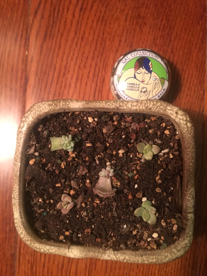 今天把叶插出苗的五颗换个地方