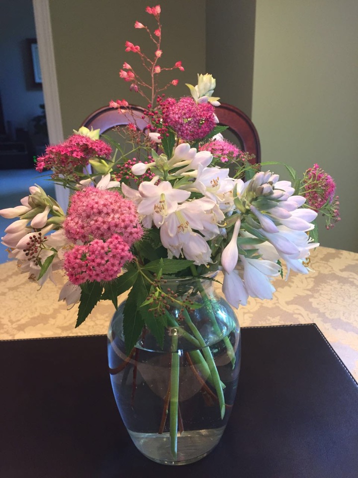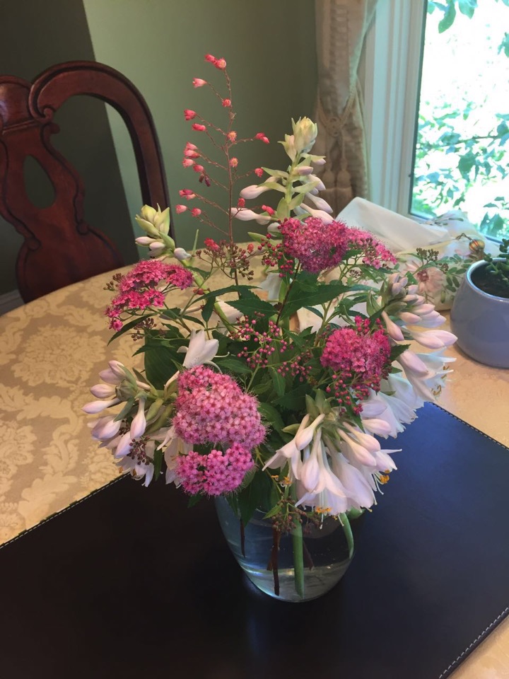 早上起来园子里转悠了一圈,随手剪了几枝做了个小插花,这主角儿便是绣线菊啦!