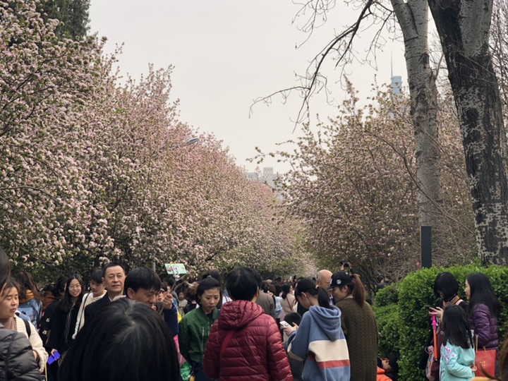 传说中的海棠大道,人山人海。那么四种海棠怎么区分呢?