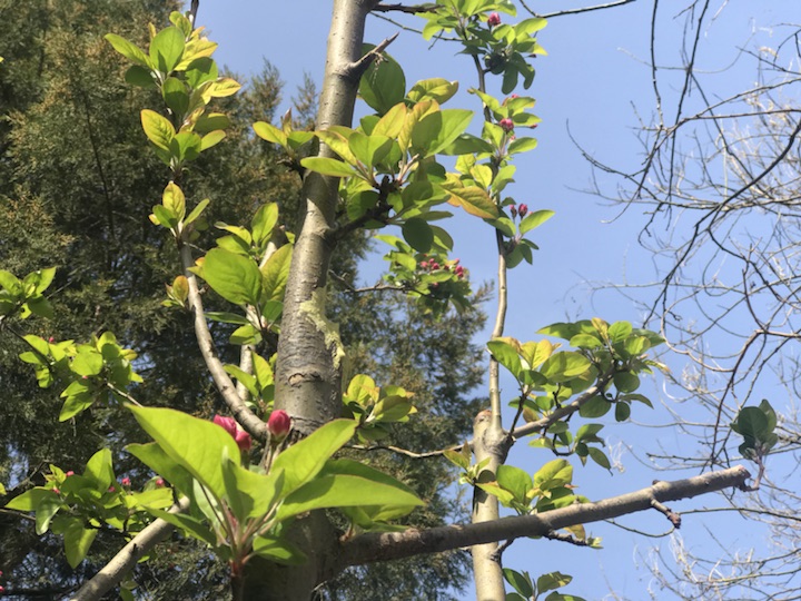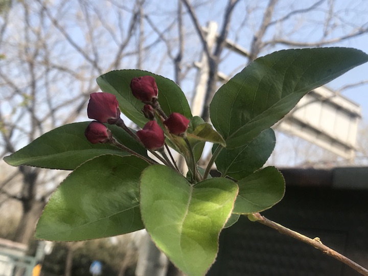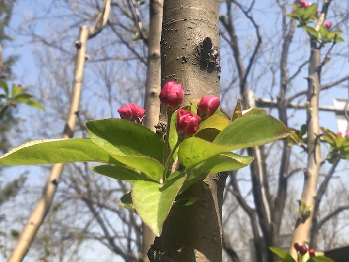 这是小院门口的海棠,在不觉间也慢慢的吐出了粉红的花蕾,马上便要霸占北京城的美了。