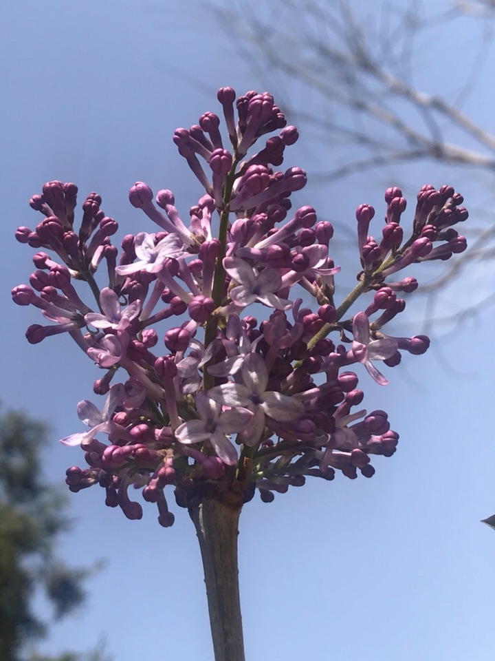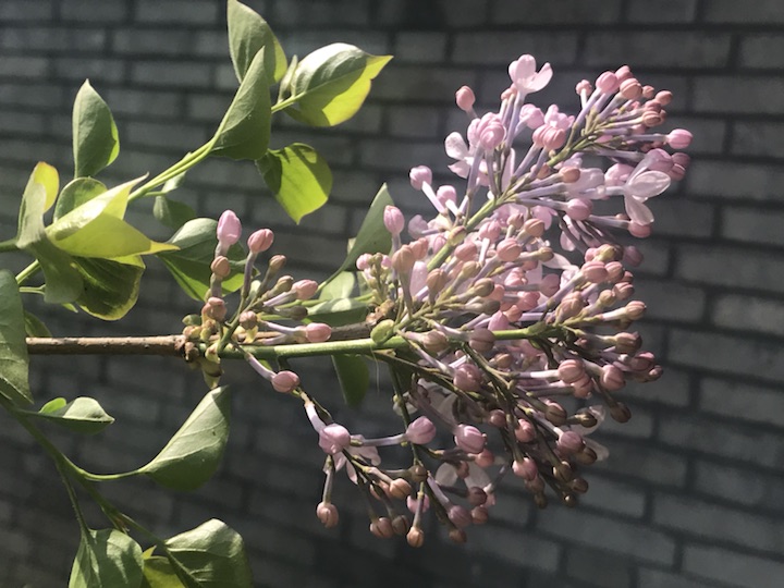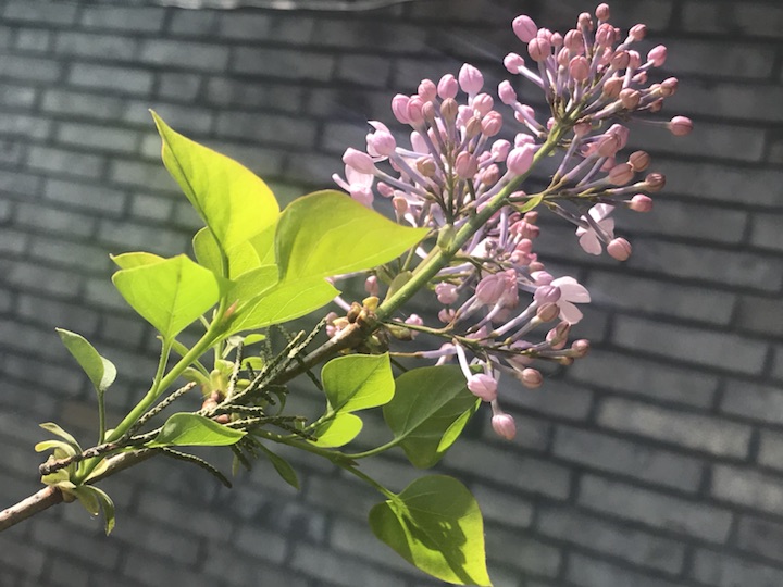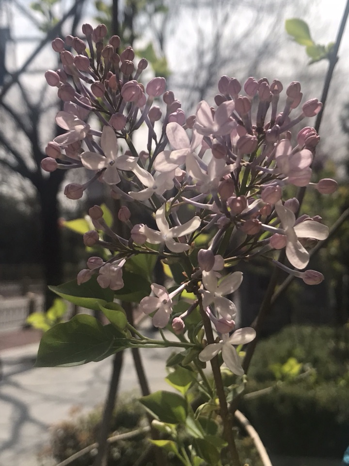 说起丁香花,大家最熟悉的莫过于紫丁香了。海棠树下有那么几株丁香,前些天还是光秃秃的连一片叶子都没有,这几天功夫不见一簇簇的小花却已悄然绽放,花朵与花苞相互依存,深深浅浅,远望灿若紫霞,温婉可人。