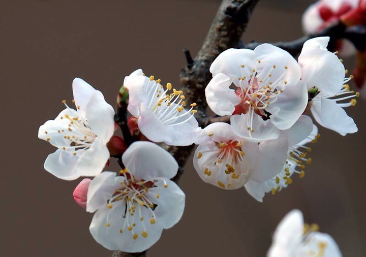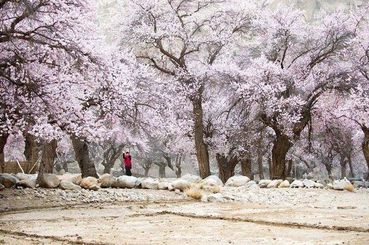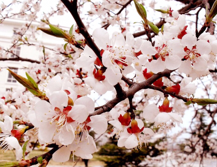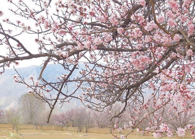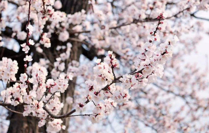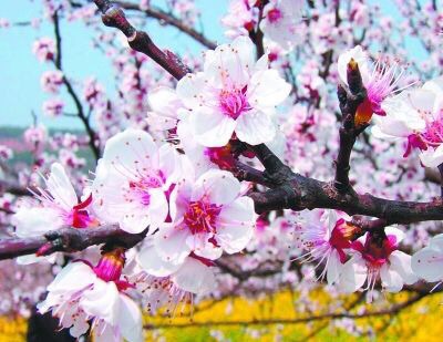 杏(学名:Armeniaca vulgaris Lam.)落叶乔木。地生,植株无毛。叶互生,阔卵形或圆卵形叶子,边缘有钝锯齿;近叶柄顶端有二腺体;淡红色花单生或2-3个同生,白色或微红色。