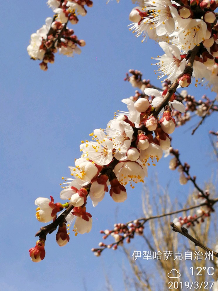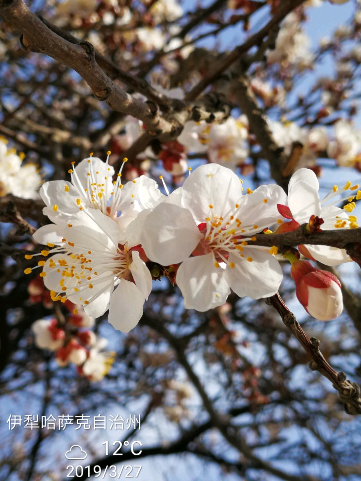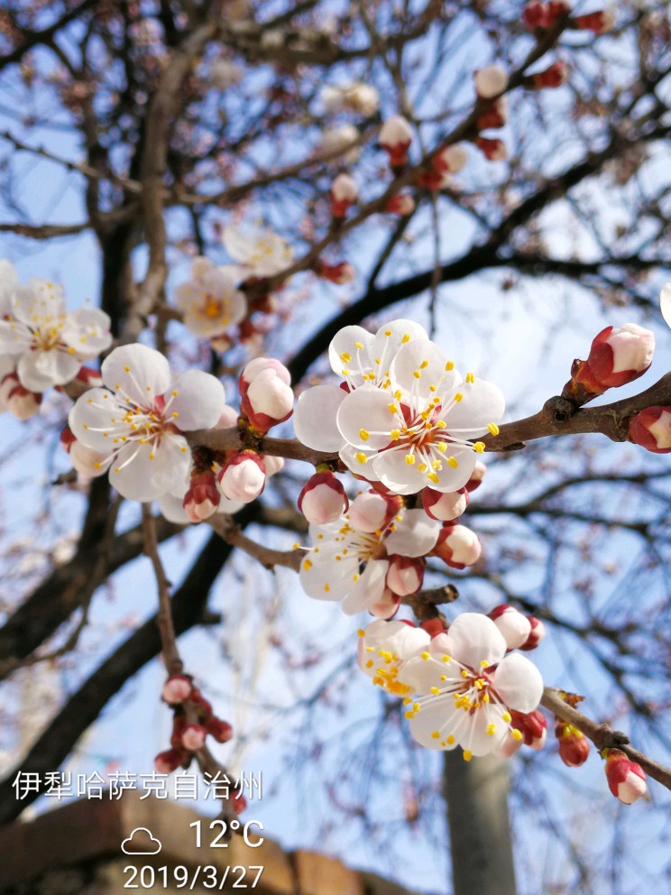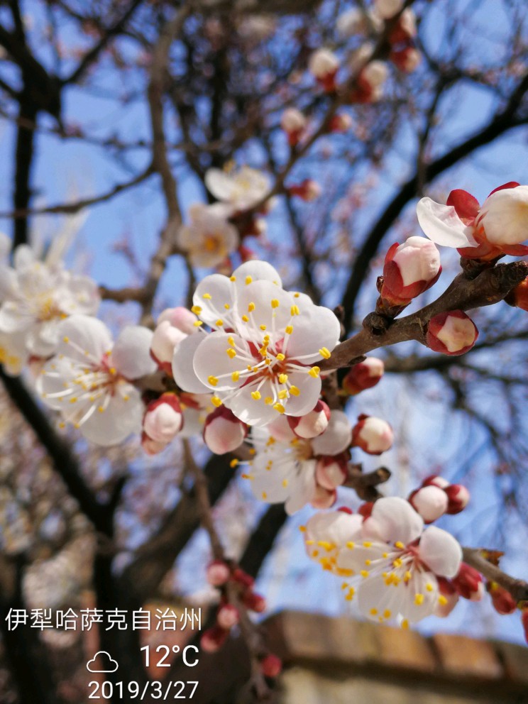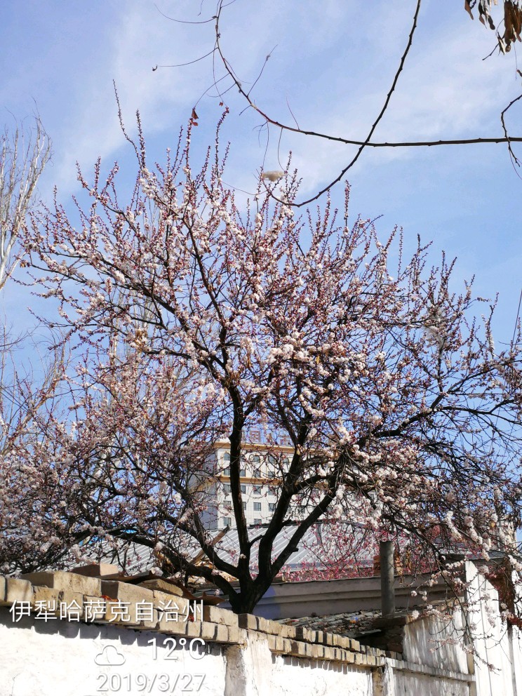 三月回疆探望父母,发现伊犁的气温比上海高多了也暖和多了。在伊宁市街头看到绽放正浓的杏花。
