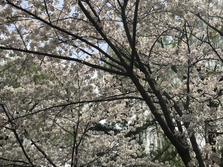 我是从玉渊潭公园的东门进入的,东门的樱花不多,路边零星的几株下全是各式拍照的人,我也跟着拍了几张,也算是19年的樱花初印象吧。