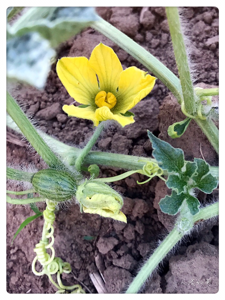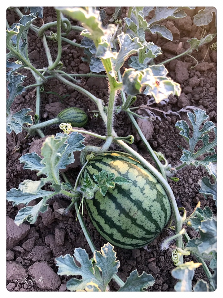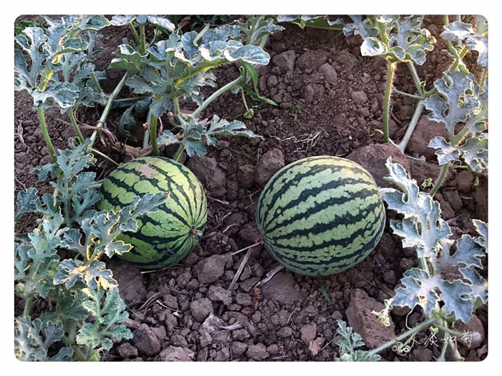 听闻,一棵西瓜秧只能留1-2个瓜,且需打杈、翻瓜,吃到甜甜的西瓜还真是不易呢