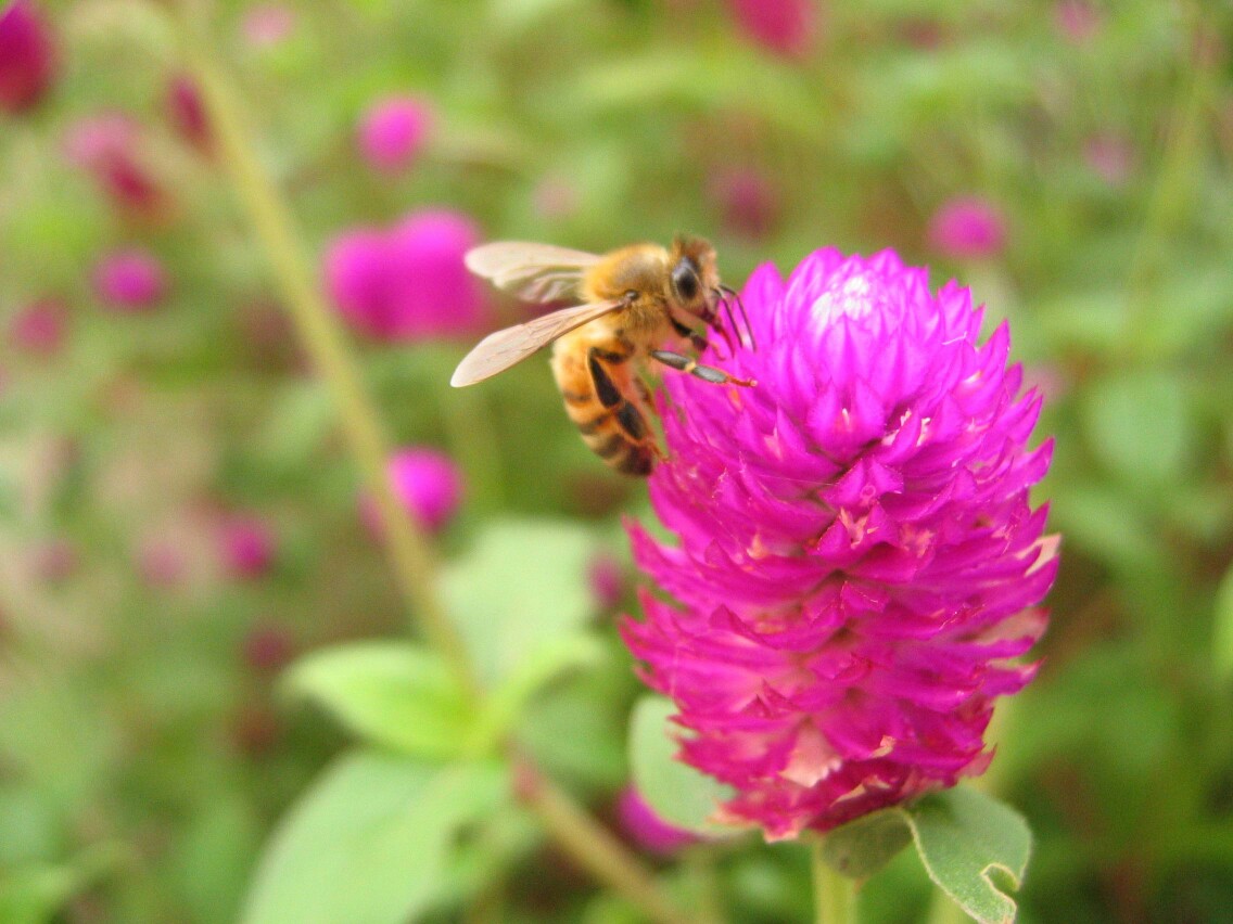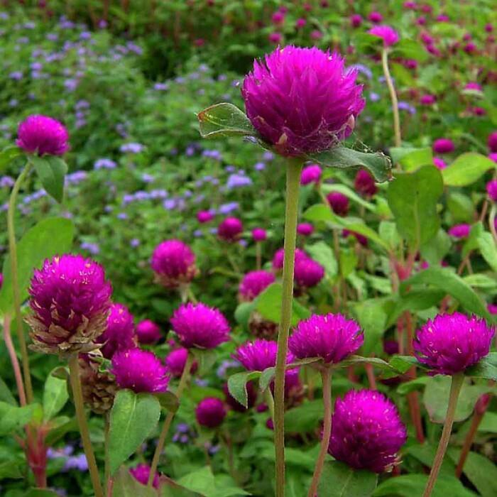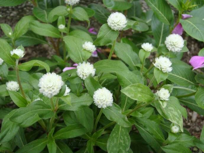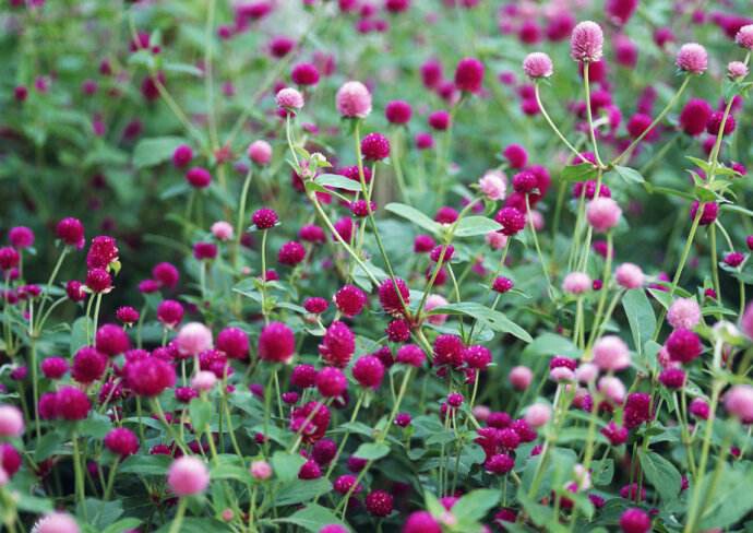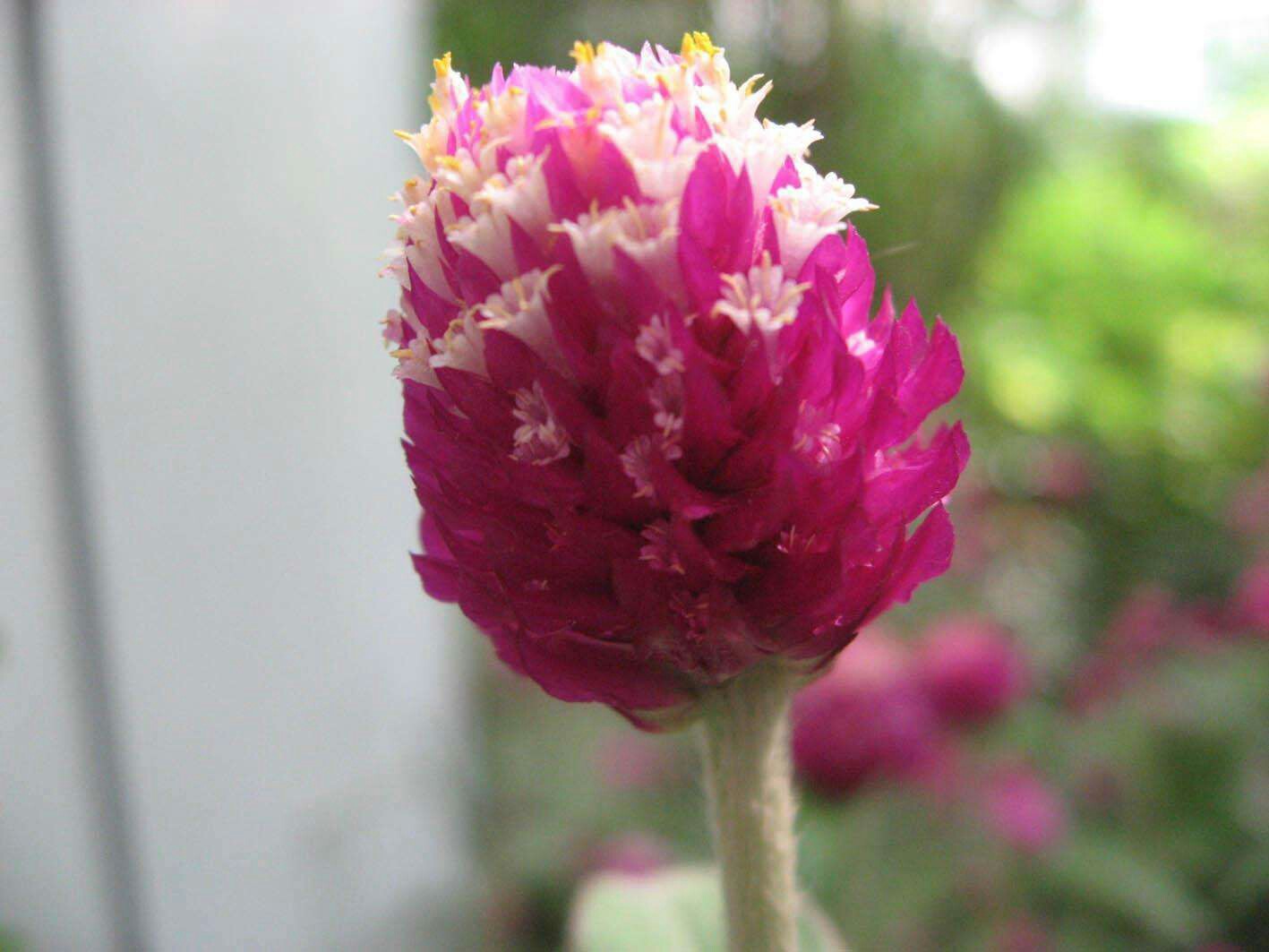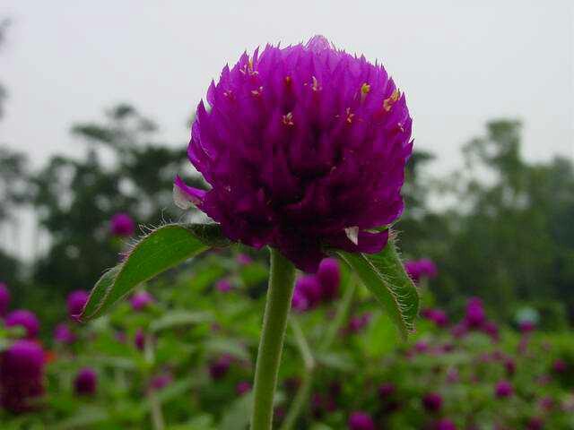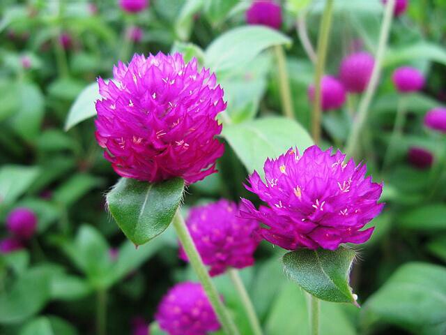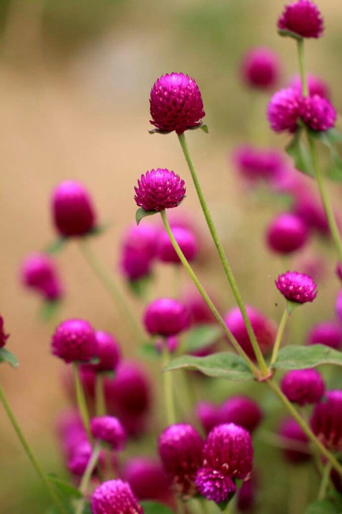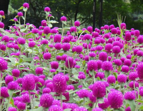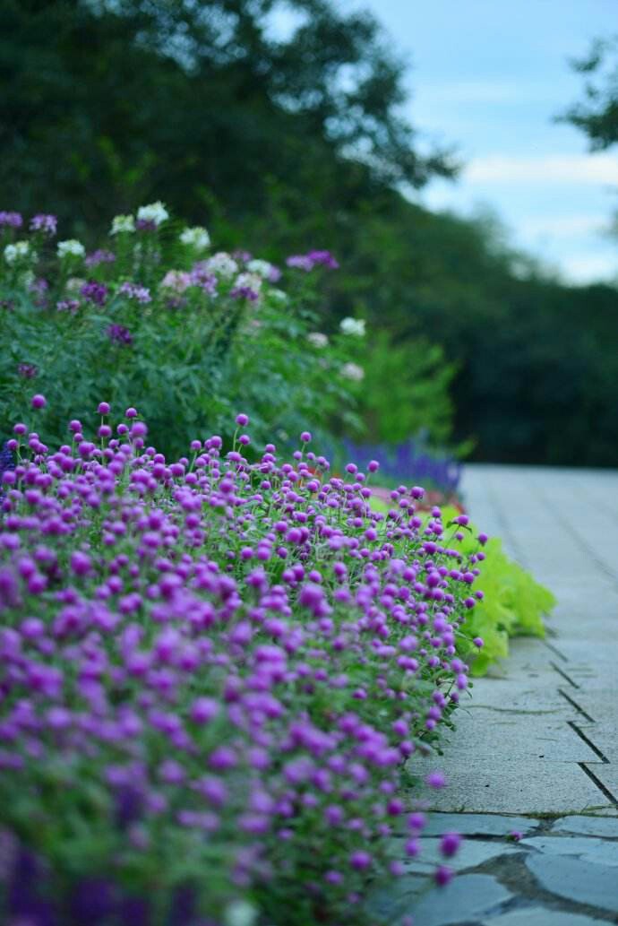 回想第一次看见千日红的时候还是在七年前,同学带我去她姥姥家玩,不大的小院里种满了花,我看见一朵紫色的小花很漂亮,问老人家这是什么花,可她也不清楚,只是觉得很好看,说你看这个小紫球球,现在是花,秋天的时候就成了花籽,种上就出芽,很容易成活。