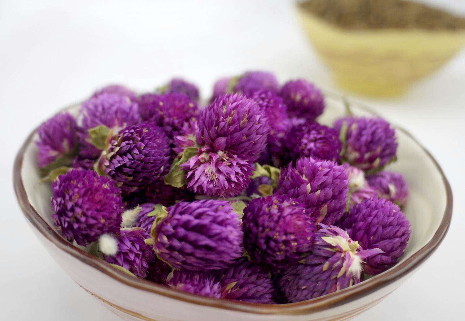 几年以后的一天,我去超市买东西,走过茶专柜的时候无意之中扫了一眼摆在柜子上面的各种花茶,当时也没注意,过后一想:咦?刚才看到的那个东西怎么那么眼熟,我又返回去一看,原来是我年年都种的小紫球,怎么成花茶了?再一看标签,原来是叫千日红!功效美容养颜。原来我捡了个宝啊!还不便宜呢!以前我都给扔了。从那一年开始,千日红的花渐渐成熟的时候,我就剪下来晒干,收好,闲暇时分坐在小院里,泡一杯千日红花茶,看花开花落,看蝴蝶飞舞,拈花浅笑,聆听阳光。