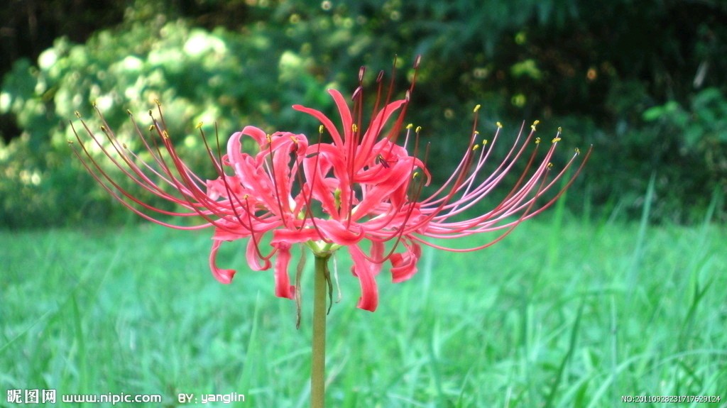 一片花瓣,破碎了一场盛世繁华。 一滴泪珠,凌乱了一曲霓裳羽衣。 彼岸花开,我生在奈何旁。 遥望远处,一片飘渺白云。 我是曼珠沙华,我在想你, 曼陀罗华。