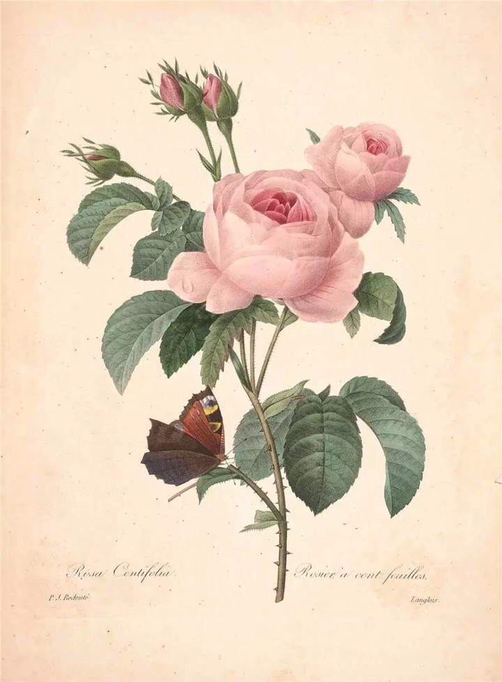 1789年热爱玫瑰的约瑟芬皇后聘请了画风独特的雷杜德,耗时20年,将约瑟芬皇后的行宫梅尔森城堡的玫瑰绘制出来,成为了今天举世无双的《玫瑰图谱》。而今,很多玫瑰品种已经消失了,而后人只能从这本著作中觅其芳踪。