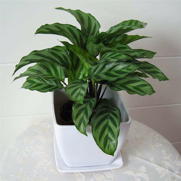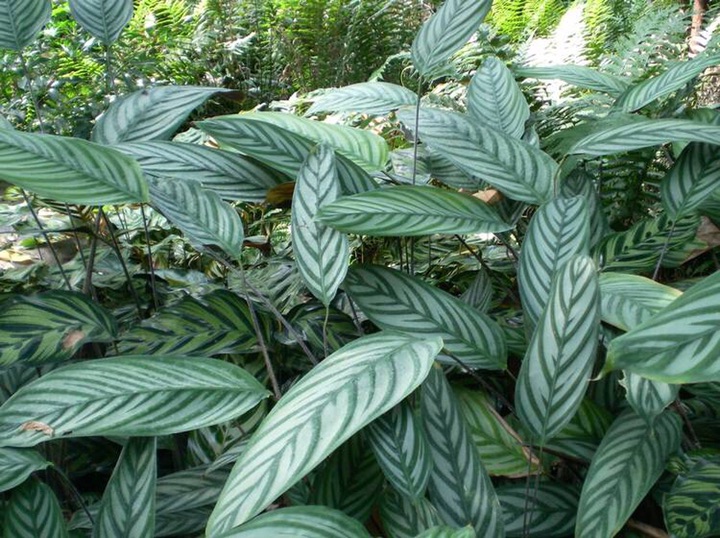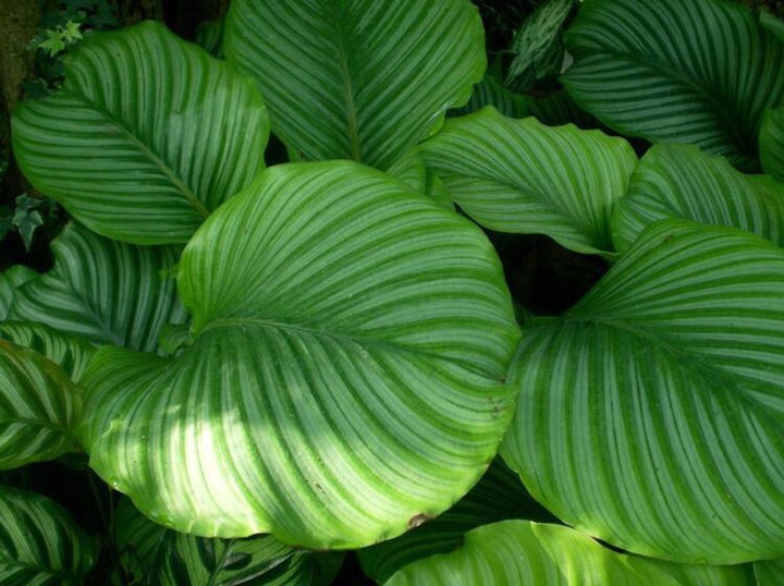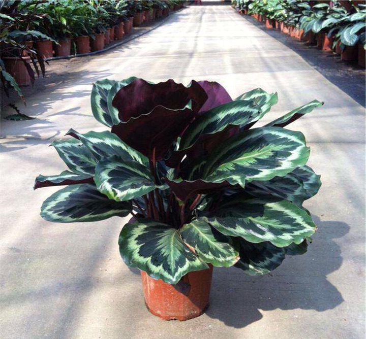 竹芋(Maranta arundinacea L.)竹芋科观叶植物。根茎肉质,纺锤形;茎2歧分枝。叶薄,卵形或卵状披针形,绿色,顶端渐尖,基部圆形,背面无毛或薄被长柔毛;叶枕上面被长柔毛;无柄或具短柄;叶舌圆形。总状花序顶生,长15-20厘米,有花数朵,苞片线状披针形,内卷;花小,白色,小花梗长约1厘米;萼片狭披针形;花冠管基部扩大;裂片长8-10毫米;外轮的2枚退化雄蕊倒卵形,内轮的长仅及外轮的一半;子房无毛或稍被长柔毛。果长圆形。花期:夏秋。