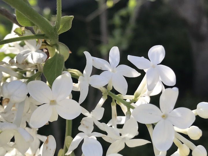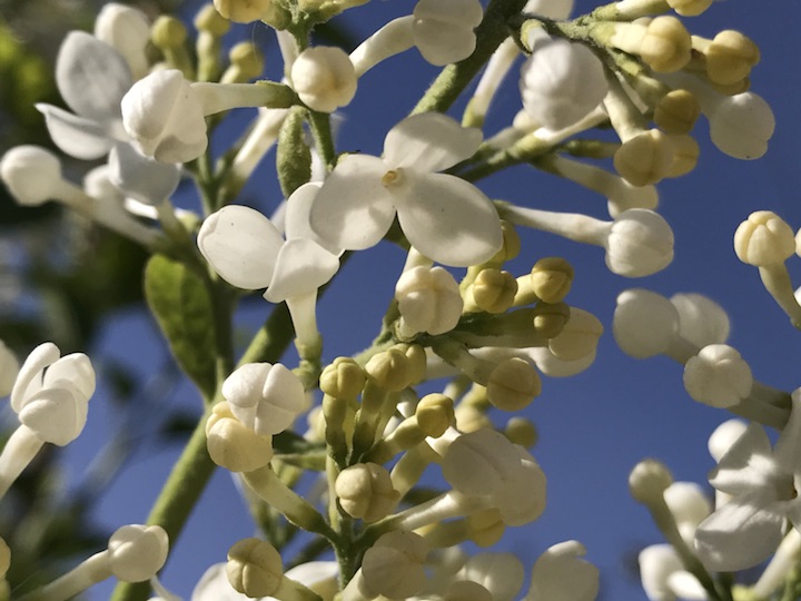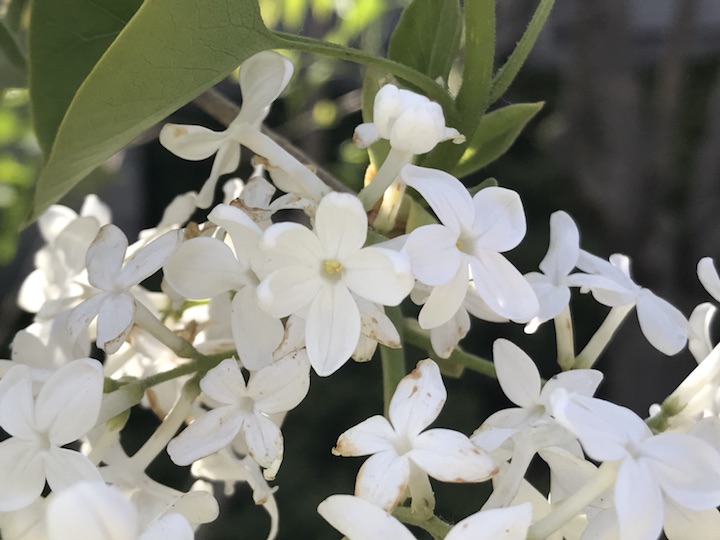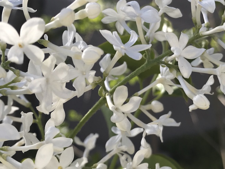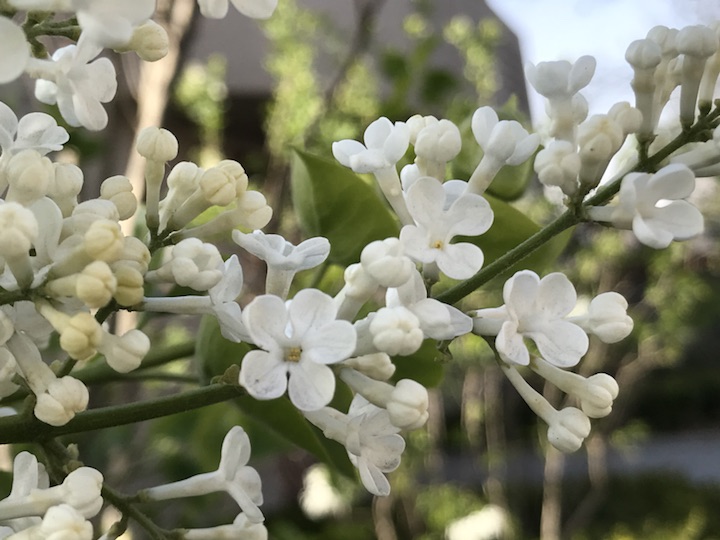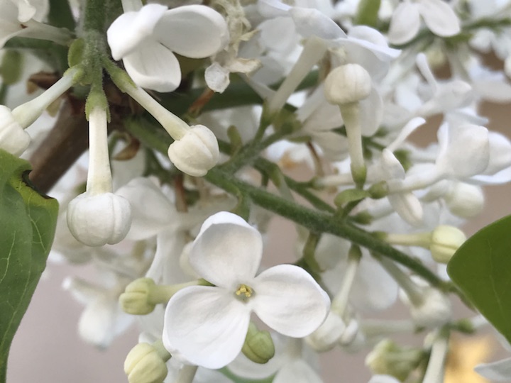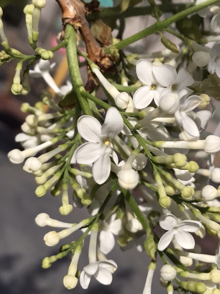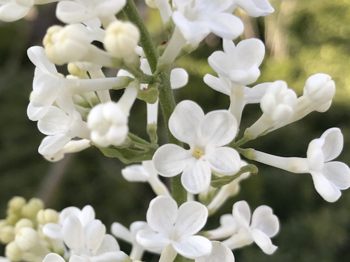 都说多做好事能幸运,我现在是信了。前面找了几圈儿也没见白色的丁香有异数花瓣,这刚给几个问路阿姨带了下路,又帮一个掉手机的姐姐找到了手机。回来的路上我便看到这几簇开得正盛的白丁香,本着随便看看的心里,居然让我找到了一朵七枚花瓣的丁香,简直不要太兴奋呐!