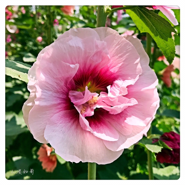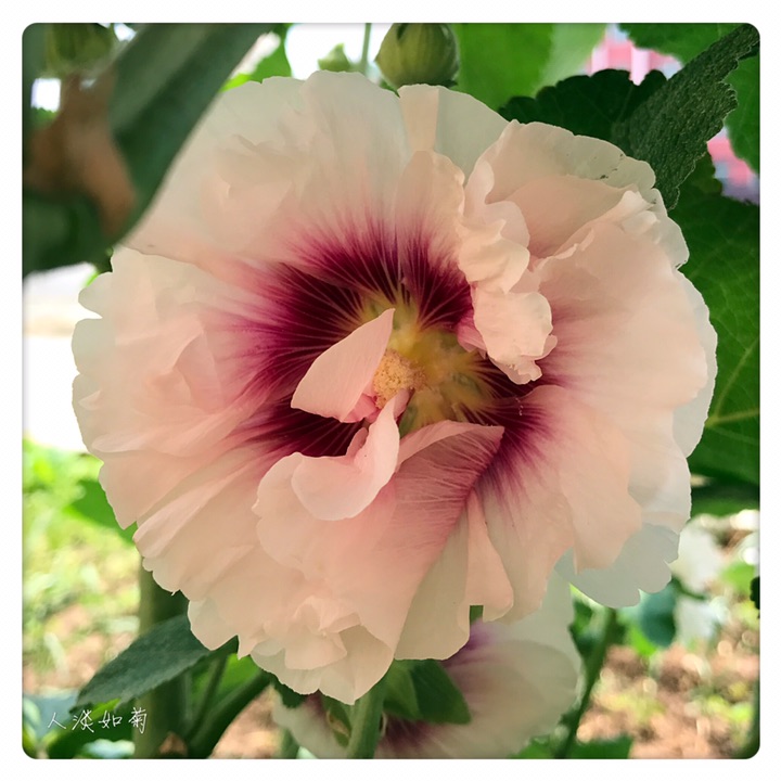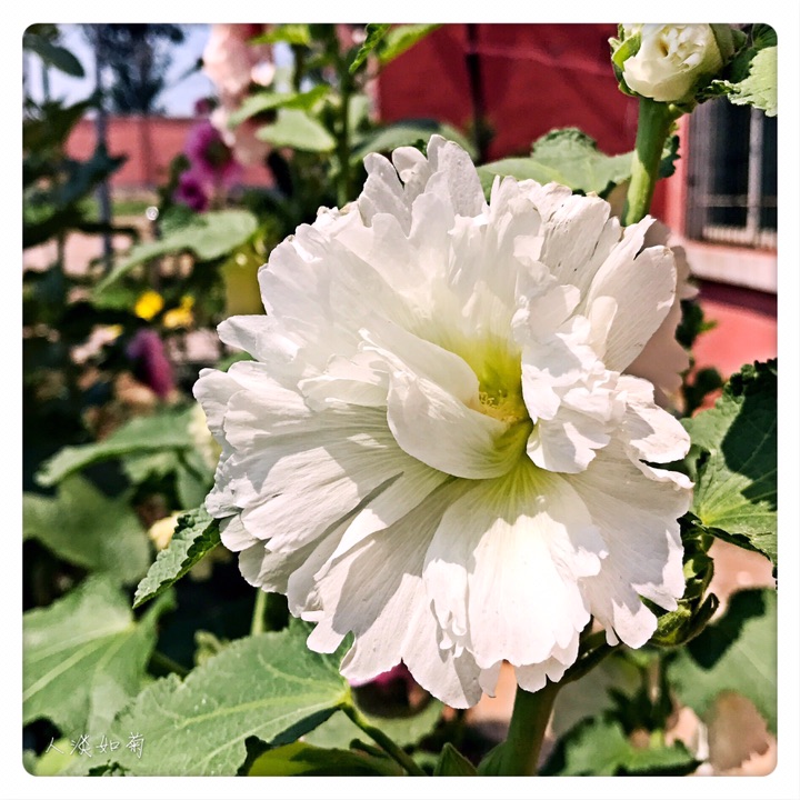 校园中种了许多蜀葵,花色是精挑细选的,每年增添新种可见主人之良苦用心,目前已有十多种,虽是很普通的花在盛花期时却也是一道风景。