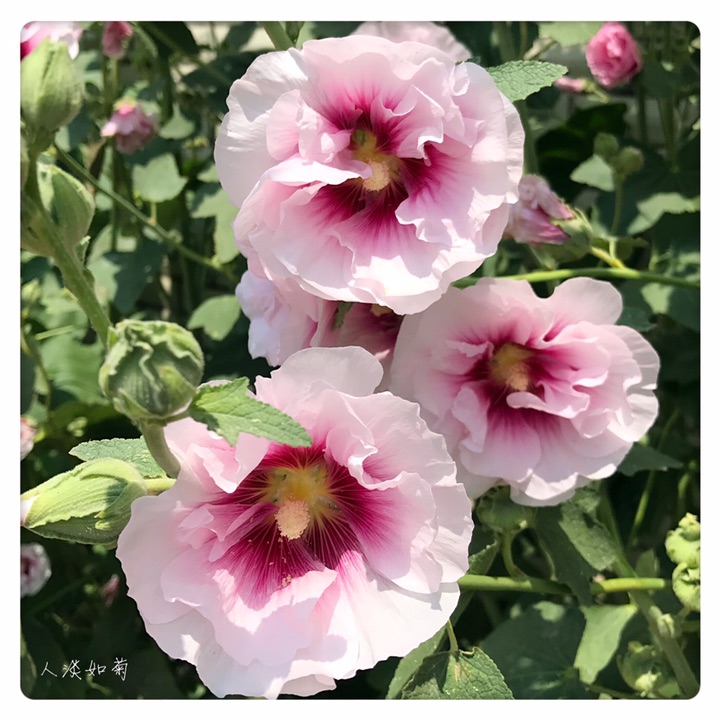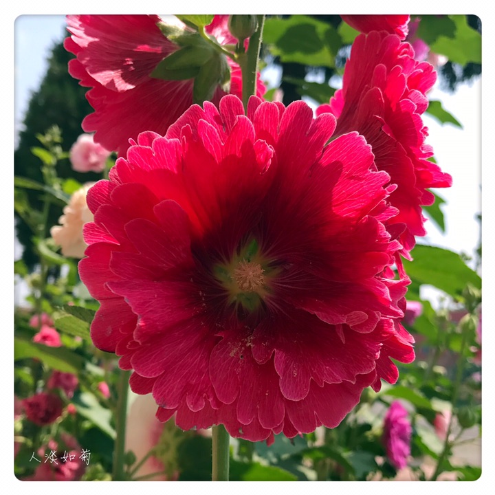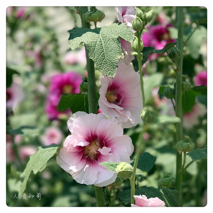 蜀葵是从小就认识一直未离开的花儿之一,从认识花草就有它的存在,但那时我们俗称其为“大葱花”,直到多年以后才知道它的中文名——蜀葵。