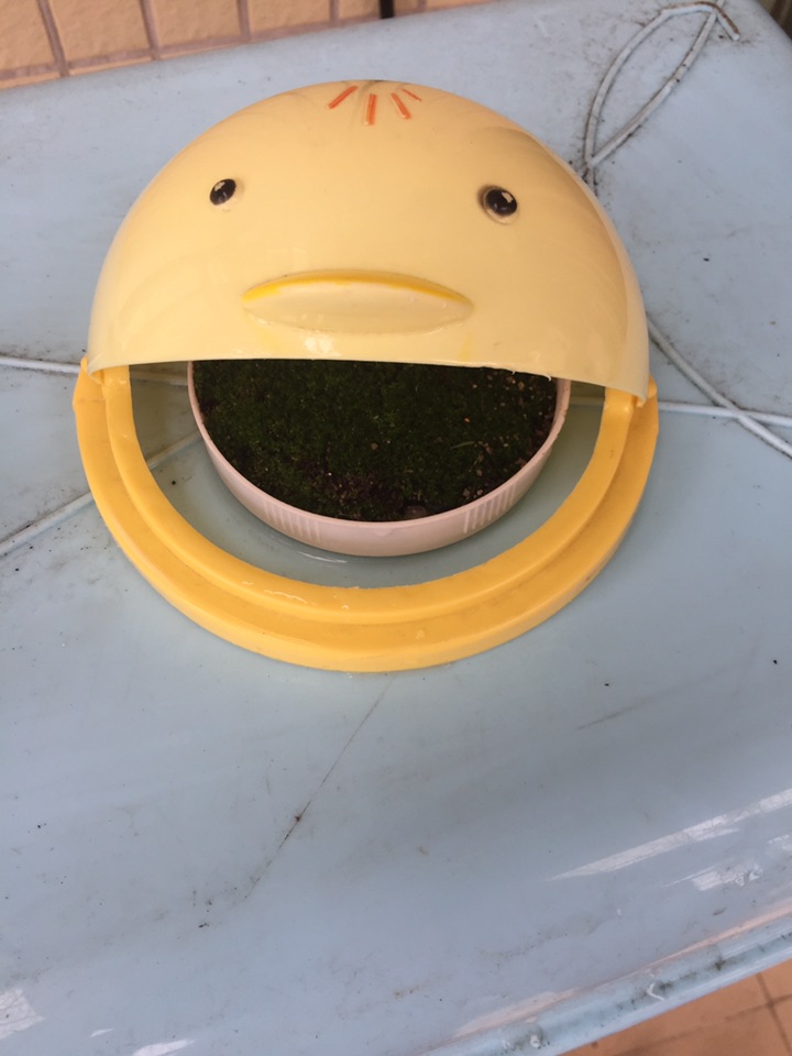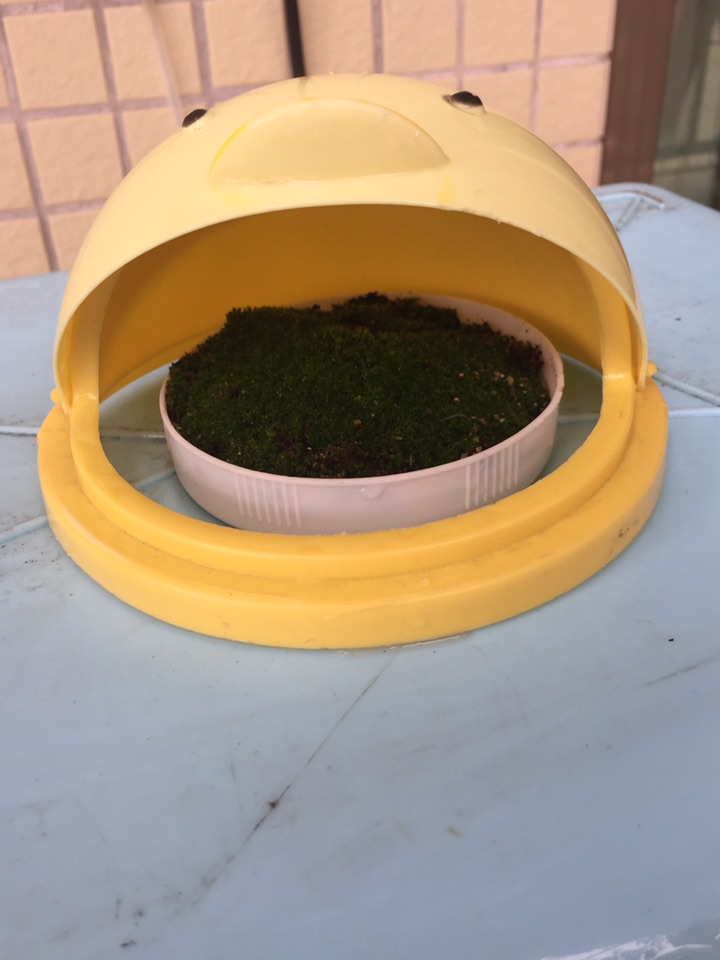 本宝宝挖了一些青苔回来,在找给它遮风挡雨的小伞伞🌂,发现杂物箱里有纸篓🗑的黄色小鸡盖子,灵机一动……