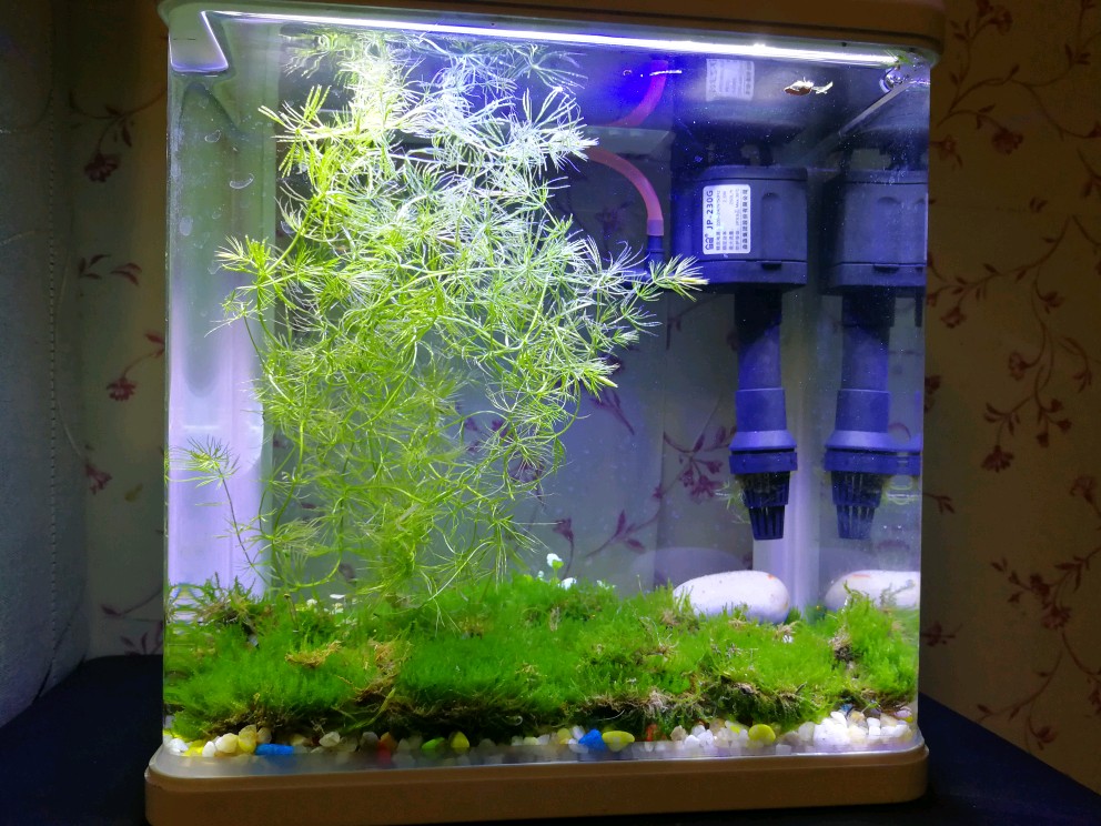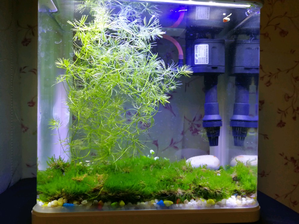 我们平时大多关注陆地上的植物,其实在水中生长的植物也能给我们带来别样的情趣,在我的电脑桌上有一只小小的鱼缸,缸底的苔藓是我挖掘后铺设的,现已成活,也算是一个稚嫩的小作品,希望大家指教