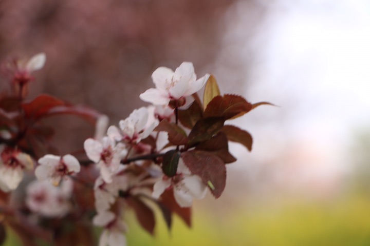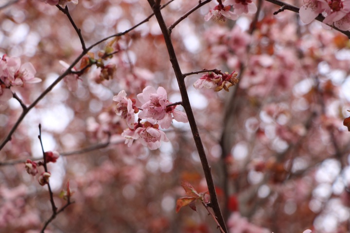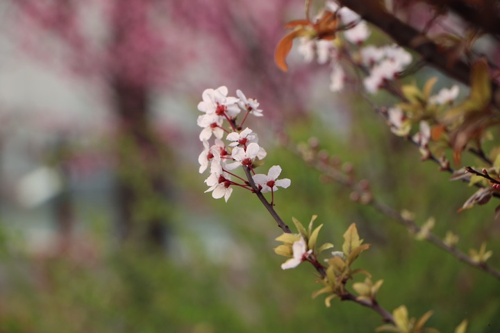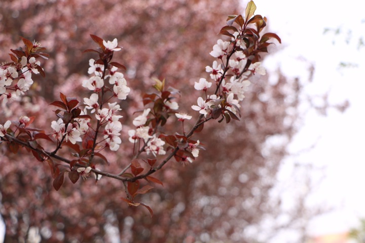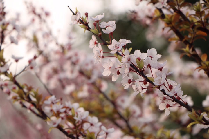 红叶李的花开的快走的快,欣赏淡粉的花朵须趁早