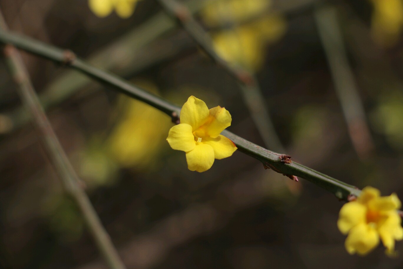 黄素馨,金腰巾。浅艳侔莺羽,纤条结兔丝。偏爱早春发,应诮众芳迟。