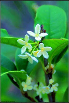 4.月桂花悲伤的桂冠 , 埋葬的阿波罗的爱。古希腊时代,皇帝和奥林匹克优胜者所戴的头冠,都是用月桂树编成的,是一种荣誉的象征。因此月桂树的花语是“骄傲”。月桂花的花语:桂花的花语是吸入你的气息。月桂,樟科月桂属的一种,为亚热带树种。常绿小乔木或灌木,树冠卵圆形,分枝较低,小枝绿色,全体有香气。叶互生,革质,广披针形,边缘波状,有醇香。单性花,雌雄异株,伞形花序簇生叶腋间,小花淡黄色。核果椭圆状球形,熟时呈紫褐色。花期3-5月,果熟期6-9月。月桂喜光,稍耐阴。喜温暖湿润气候,也耐短期低温(-8℃)。原产地中海一带,中国浙江、江苏、福建、台湾、四川及云南等省有引种栽培。月桂的拉丁字源Laudis意为“赞美”,罗马人视之为智能、护卫与和平的象征。所以在奥林匹克竞赛中获胜的人,都会受赠一顶月桂编成的头环,而“桂冠诗人”的意象,也正是由这个典故衍生出来的。人们也常将月桂树与医疗之神阿波罗联想在一起。