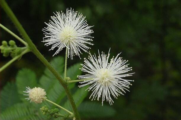 光荚含羞草(学名:Mimosa sepiaria Benth.)是豆科,含羞草属落叶灌木,高可达6米;小枝无刺,二回羽状复叶,叶轴无刺,被短柔毛,小叶片线形,革质,先端具小尖头,中脉略偏上缘。头状花序球形;花白色;花萼极小;花瓣长圆形,荚果带状,劲直,成熟时荚节脱落而残留荚缘。