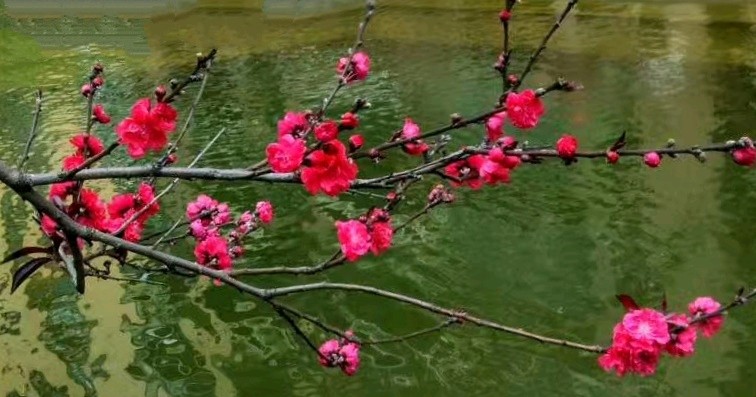 小潭每年就是元旦前清洗一次,到碧桃开时,就是碧潭红花的感觉(图一)[呲牙][呲牙][呲牙]上周不知为啥又洗了,变成游泳池的既视感(图二三四五六七八九……)😂😂😂物业套路深👍洗个池子换个景观