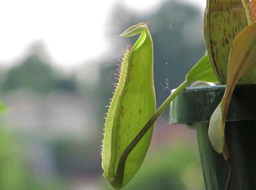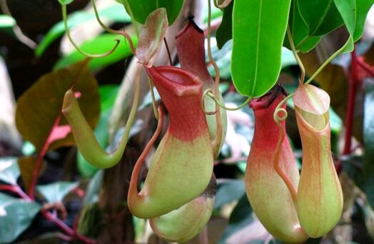 猪笼草是猪笼草属全体物种的总称。属于热带食虫植物,原产地主要为旧大陆热带地区。其拥有一个独特的吸取营养的器官——捕虫笼,捕虫笼呈圆筒形,下半部稍膨大,笼口上具有盖子,因其形状像猪笼而得名。猪笼草叶的构造复杂,分叶柄,叶身和卷须。卷须尾部扩大并反卷形成瓶状,可捕食昆虫。猪笼草具有总状花序,开绿色或紫色小花,叶顶的瓶状体是捕食昆虫的工具。瓶状体的瓶盖复面能分秘香味,引诱昆虫。瓶口光滑,昆虫会被滑落瓶内,被瓶底分泌的液体淹死,并分解虫体营养物质,逐渐消化吸收。猪笼草属植物全世界有野生种约170种,中国广东地区仅产一种,另外有园艺种超过1000种。 猪笼草虽然在广东的三岭山、雷州等地有野生分布,但很少应用。