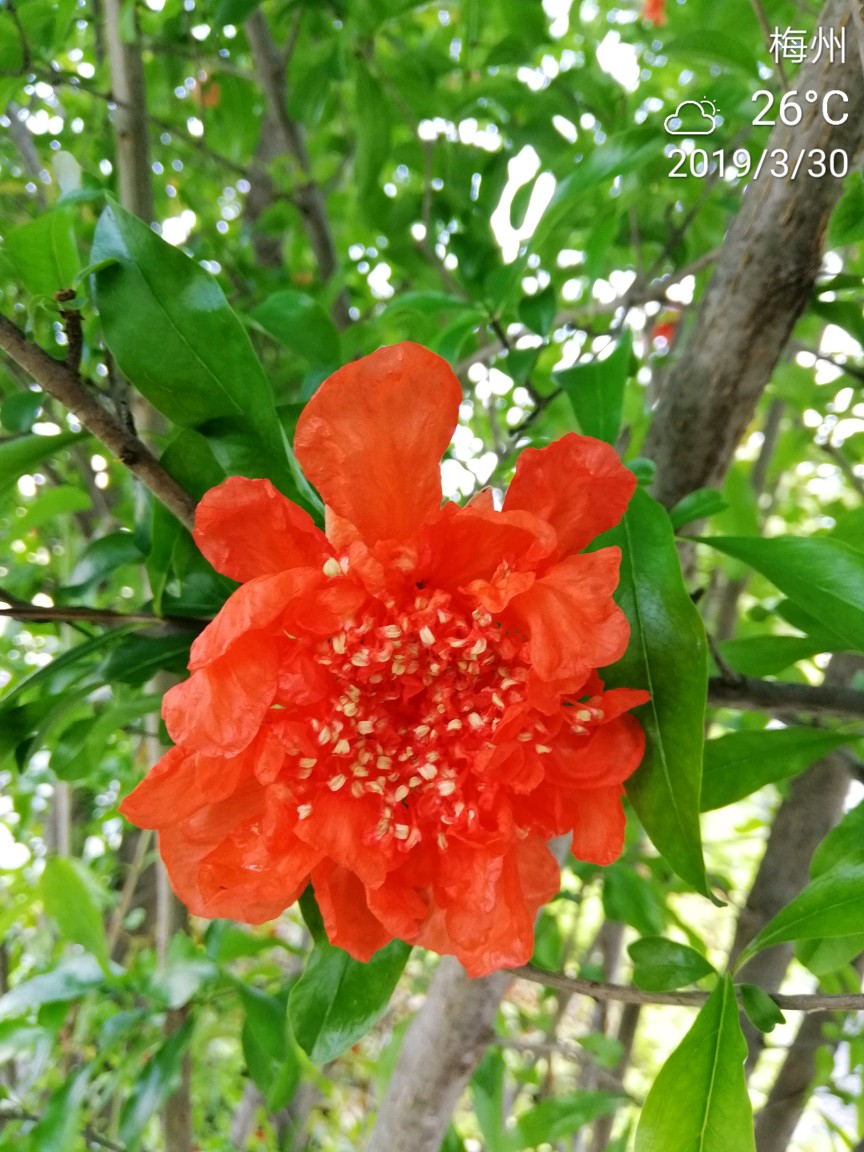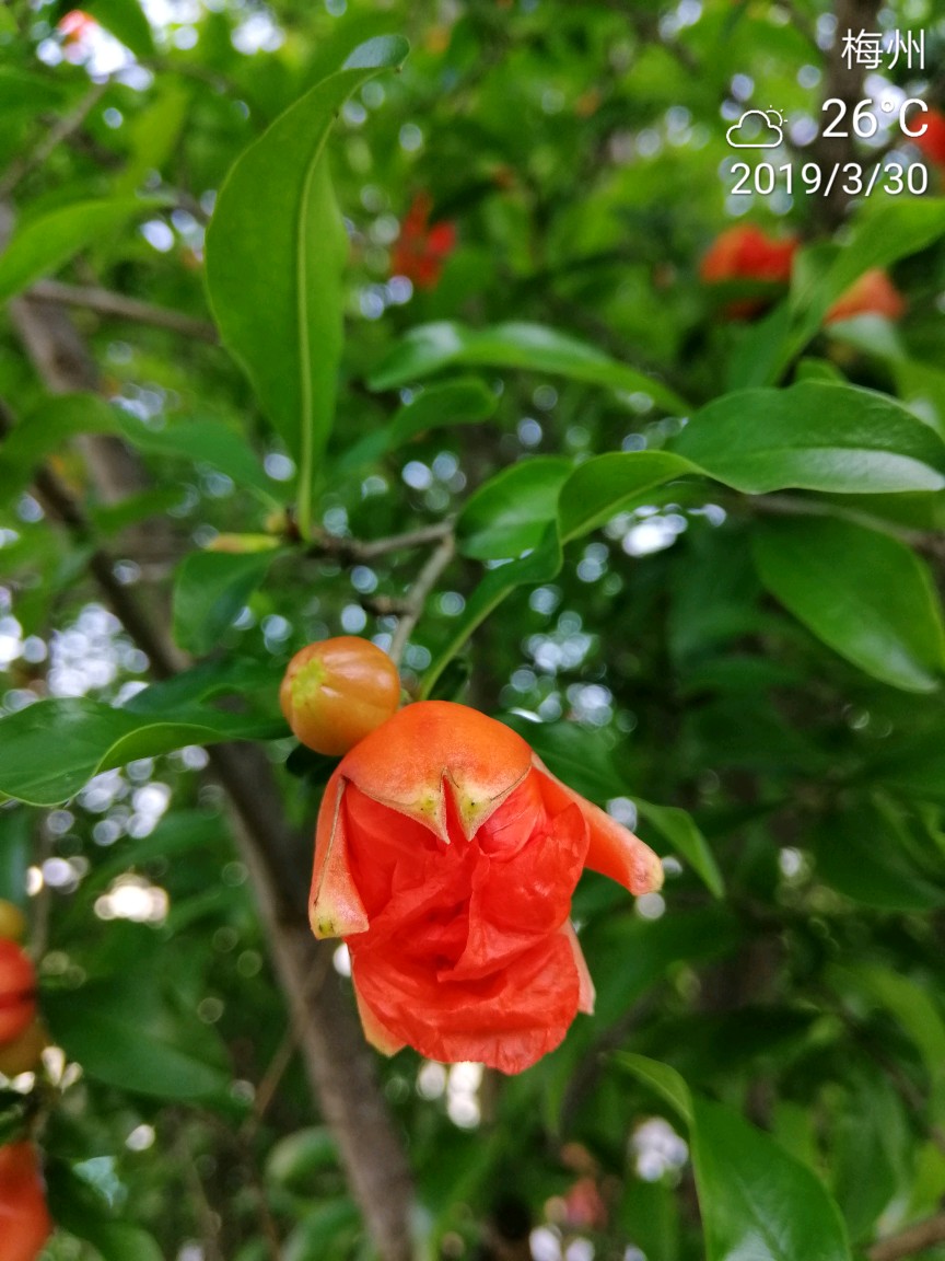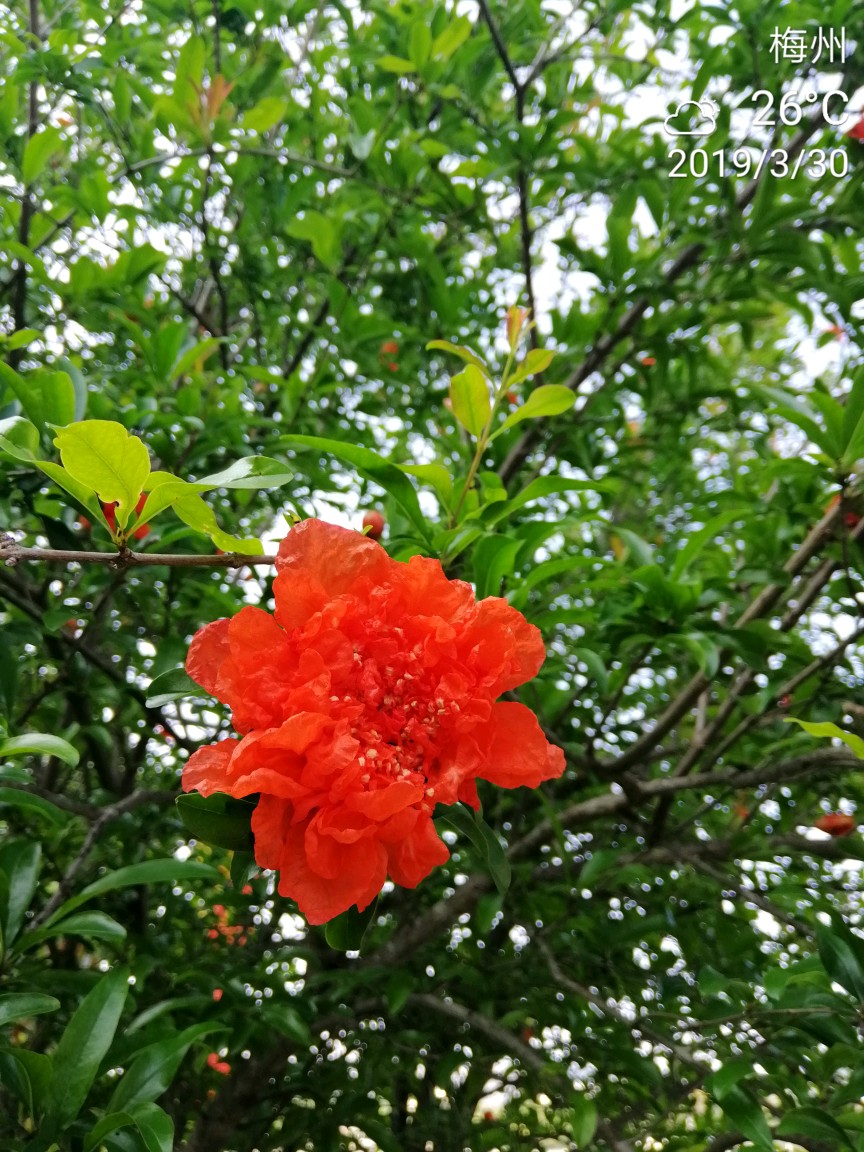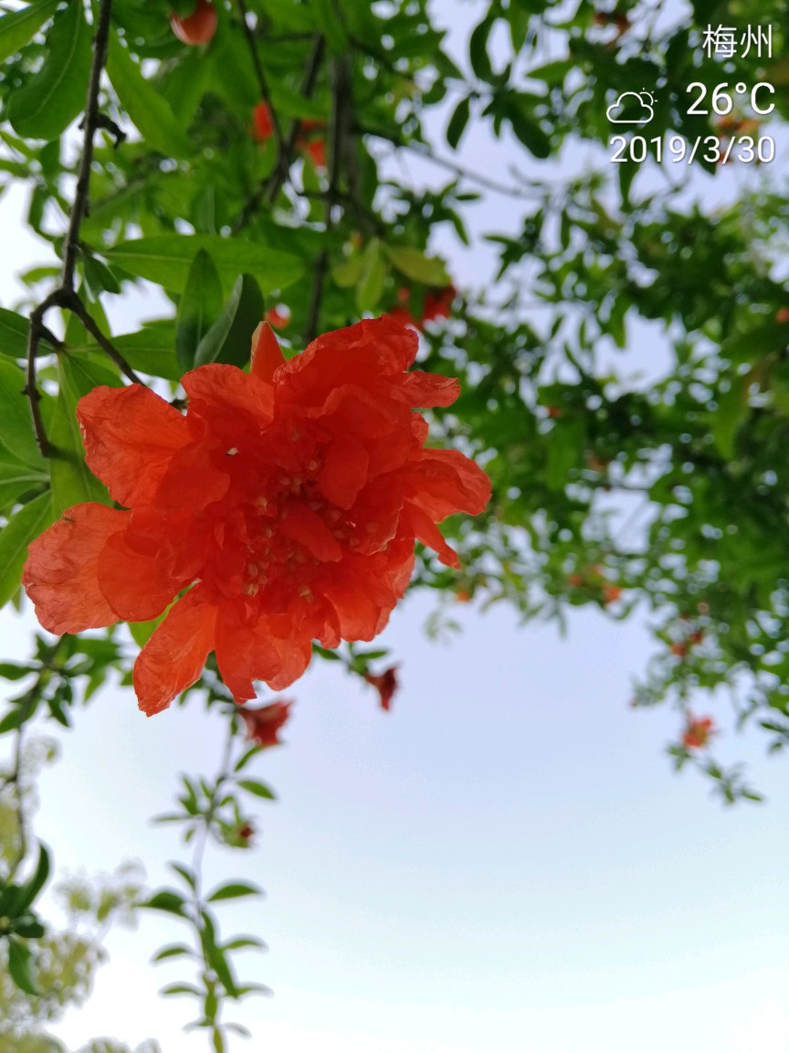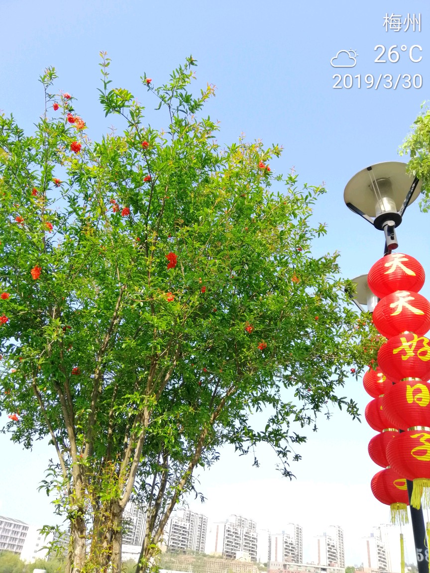 古诗有云"五月榴花照眼明",可是梅州的花儿,总是要赶在季节的前面,你看,三月底,四月初,梅江河畔的石榴花已映照蓝天,开得红红火火……